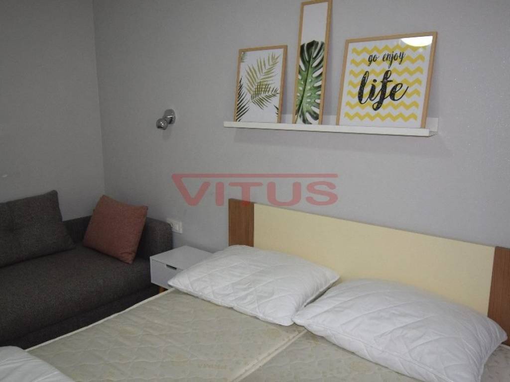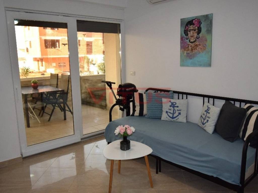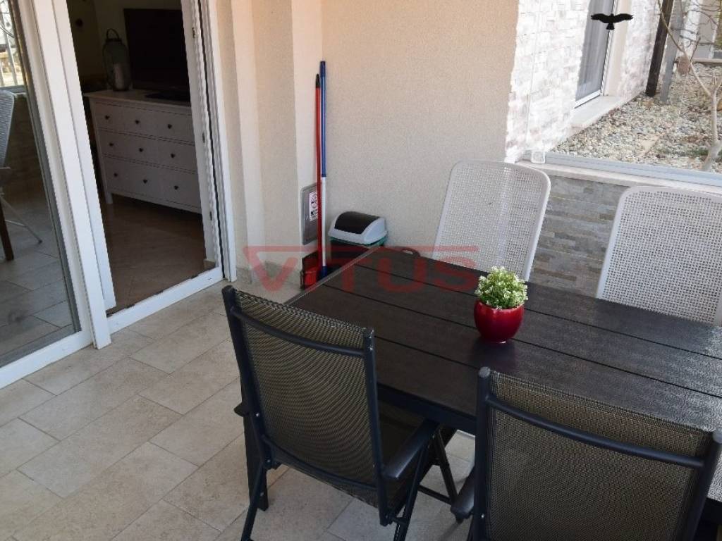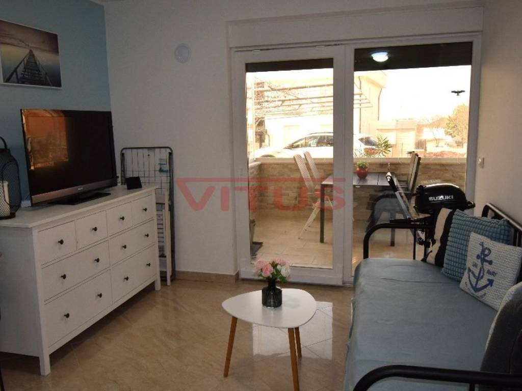 Island of Krk, Njivice! A functional apartment of 40 m2 is located on the ground floor of a residential building in Njivice. It consists of an entrance hall, kitchen with living room, bedroom and bathroom. The living room leads to a spacious covered terrace and a 22 m2 garden. The apartment is air-conditioned and is being sold furnished, and it also has one parking space in the garden of the building. Quiet location, 600 m from the sea!