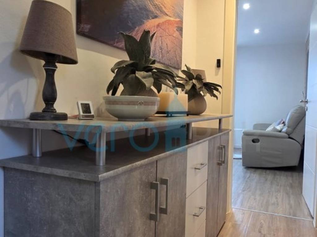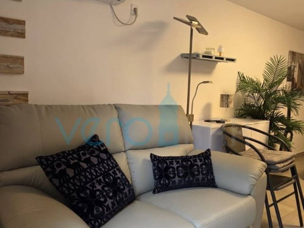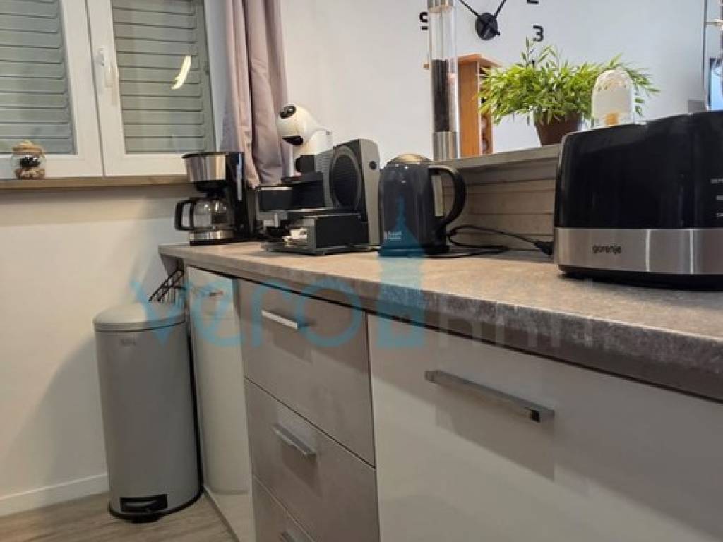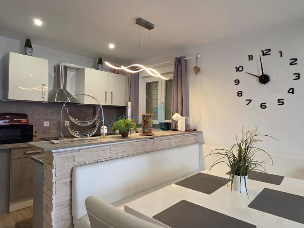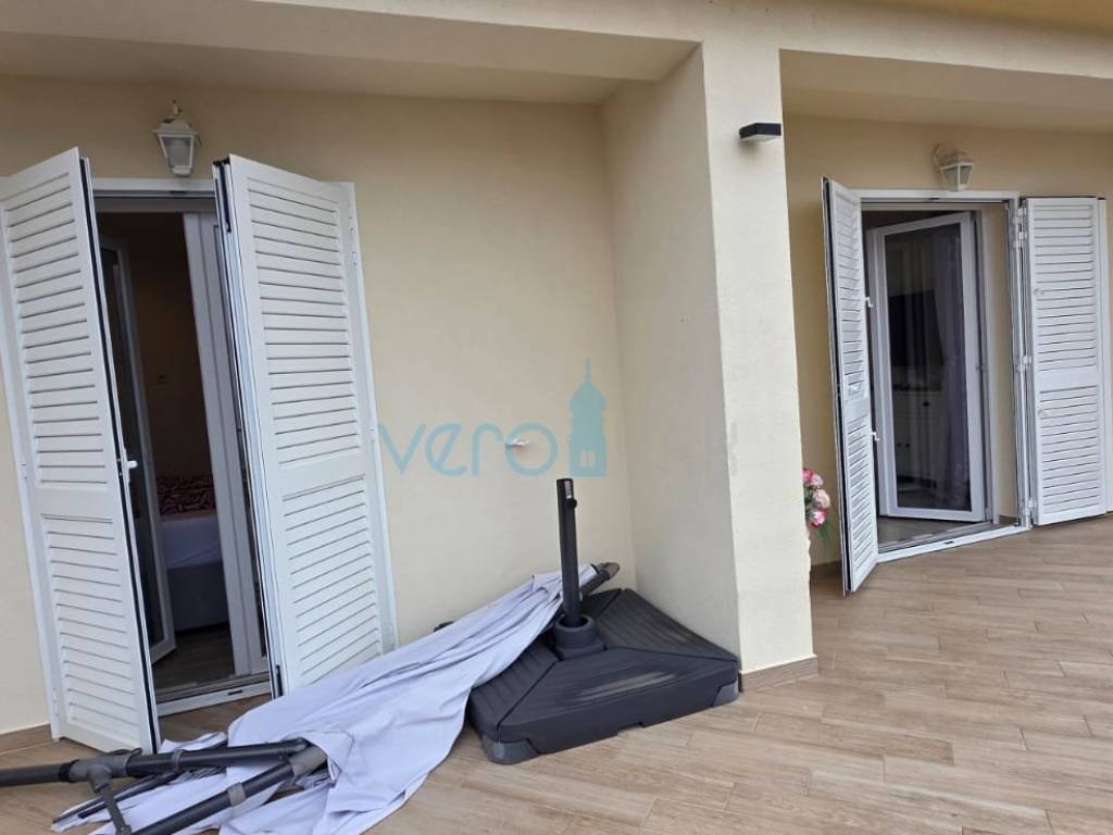 Das freistehende Haus mit einer Gesamtfläche von 110 m2 besteht aus Hochparterre und Keller. Im Hochparterre befinden sich der Eingangsflur, ein Badezimmer, zwei Schlafzimmer, das Wohnzimmer mit Küche, Essbereich und Ausgang zur großzügigen Terrasse, in der ein Jacuzzi eingebaut ist. Von der Terrasse bietet sich ein Panoramablick auf das Meer. In einem kleineren Nebenraum befindet sich ein neu renoviertes, geräumiges Zimmer, und in einem größeren Raum befinden sich ein neues Badezimmer, ein Waschraum und ein Abstellraum. Auf dem großzügigen Grundstück von 252 m2 gibt es ausreichend Platz für Parkmöglichkeiten und die Aufstellung eines Pools.
