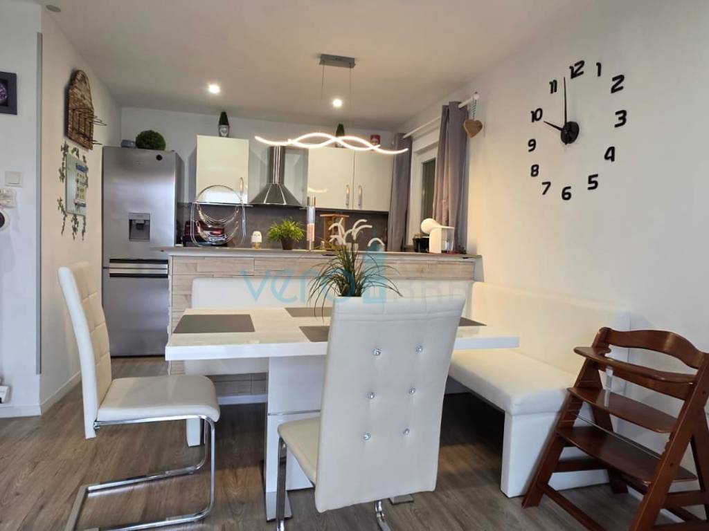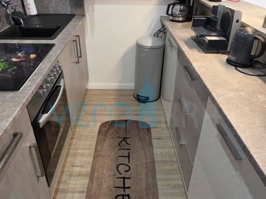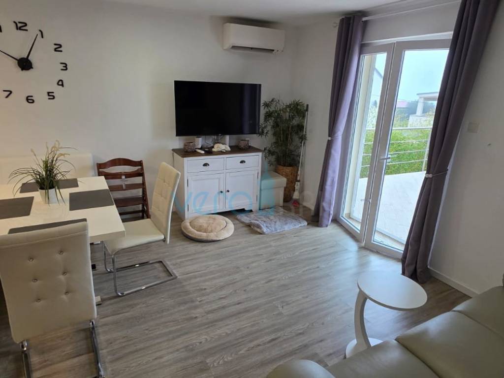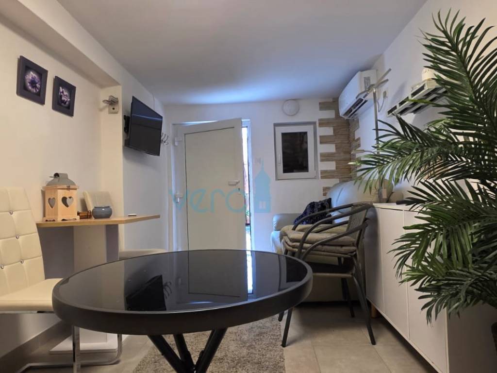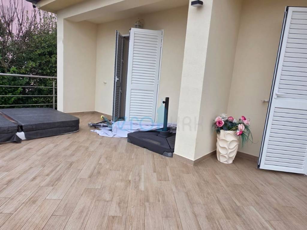 Das freistehende Haus mit einer Gesamtfläche von 110 m2 besteht aus Hochparterre und Keller. Im Hochparterre befinden sich der Eingangsflur, ein Badezimmer, zwei Schlafzimmer, das Wohnzimmer mit Küche, Essbereich und Ausgang zur großzügigen Terrasse, in der ein Jacuzzi eingebaut ist. Von der Terrasse bietet sich ein Panoramablick auf das Meer. In einem kleineren Nebenraum befindet sich ein neu renoviertes, geräumiges Zimmer, und in einem größeren Raum befinden sich ein neues Badezimmer, ein Waschraum und ein Abstellraum. Auf dem großzügigen Grundstück von 252 m2 gibt es ausreichend Platz für Parkmöglichkeiten und die Aufstellung eines Pools.