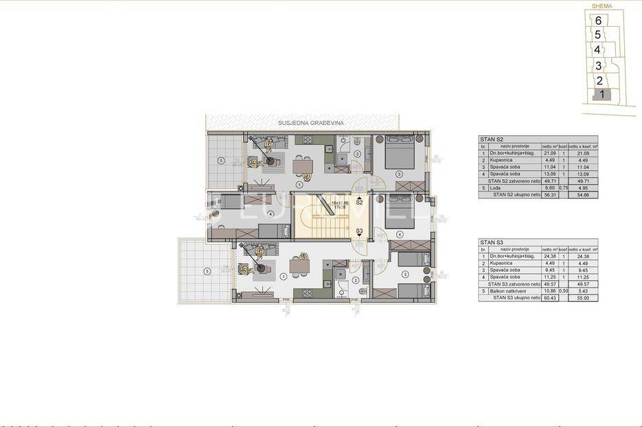 Predstavljamo izniman višestambeni projekt u naselju Kaštanjer. Kompleks se sastoji od šest zgrada, svaka s četiri stambene jedinice, smještenih u privatnoj slijepoj ulici. Projekt nudi savršen spoj urbanog života i mirnog okruženja, idealnog za obiteljski život.Nudimo trosobni stan oznake S2, smješten na prvom katu Zgrade 3. Ovaj dom površine 60 m² osmišljen je za maksimalnu udobnost i funkcionalnost. Sastoji se od ulaza, dvije spavaće sobe, dnevnog boravka integriranog s kuhinjom i blagovaonicom, te kupaonice. Poseban naglasak stavljen je na natkriveni balkon, idealan za opuštanje.Uz stan dolaze prostrano vanjsko spremište SPR 2 i osigurano vanjsko parkirno mjesto. Stambeni prostor iznosi 55 m², dok ukupna kvadratura s pripadajućim dijelovima doseže 60 m².Stan se prodaje po principu "ključ u ruke", spreman za useljenje. Kvaliteta gradnje i opreme je na najvišoj razini: kupaonica ima podno grijanje, a dnevni boravak inverter klima uređaj. Dimnjak omogućuje postavljanje peći na drva ili pelete (opcija nadoplate za podno grijanje u cijelom stanu). Ugrađena je PVC stolarija s električnim podizačima roleta na balkonu. Interijer je oplemenjen prvoklasnom keramikom i laminatom.Predviđeni završetak radova je proljeće 2027. godine.Kupac je oslobođen plaćanja poreza na promet nekretnina, što predstavlja značajnu uštedu. Ova nekretnina je izvanredna prilika za moderan, udoban i kvalitetan dom na prestižnoj lokaciji u Puli, s naglaskom na luksuzan životni stil.Za sve dodatne informacije ili dogovor oko razgleda, naš tim stoji Vam na raspolaganju.... Više na eurovilla.hr, ID: 565462
