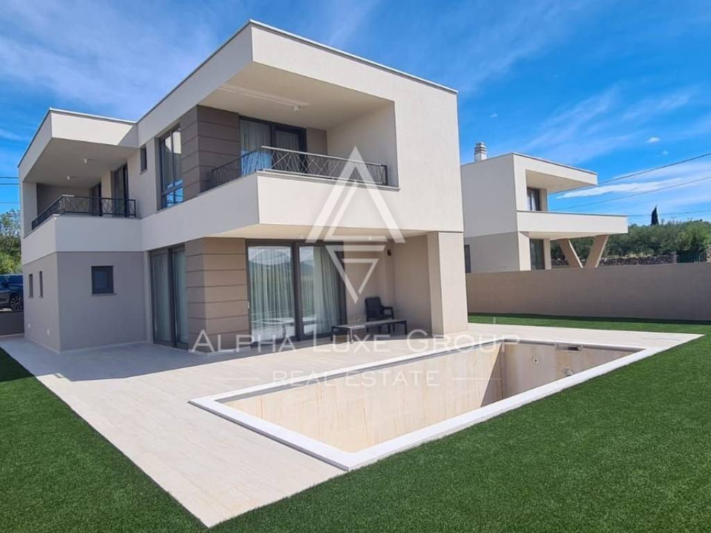 Neu gebaute Villa B2 mit Pool auf der Insel Krk, Wohnfläche von 165 m2 zu verkaufen. Es befindet sich im Dorf Brzac. Die Villa besteht aus Erdgeschoss und erstem Obergeschoss und einem dazugehörigen Garten. Im Erdgeschoss befinden sich eine Eingangshalle, eine Küche mit Esszimmer und Wohnzimmer, ein Schlafzimmer mit eigenem Bad, eine Toilette, ein Abstellraum, eine Sauna, zwei Abstellräume und eine überdachte Terrasse. Im Obergeschoss befinden sich drei Schlafzimmer mit Zugang zur Terrasse, zwei Badezimmer, ein Ankleidezimmer, eine überdachte und eine nicht überdachte Terrasse. Die Villa hat einen schönen Blick auf das Meer und ist komplett fertiggestellt. Das Interieur ist komplett möbliert und steht als solches zum Verkauf. Die Umgebung ist mit Grün und einem Bewässerungssystem und einem abgelegenen Zaun gestaltet. Ausrüstung: - Vorbereitung für die Erwärmung des Wassers im Pool mit einer Wärmepumpe - elektrische Fußbodenheizung des gesamten Gebäudes, Regelung über WLAN möglich - Vorbereitung für ein Photovoltaik-Kraftwerk auf dem Dach - Möbel, basic (maßgefertigte Küche mit Geräten, Tisch, Stühlen, Wohnzimmermöbeln, Betten in den Schlafzimmern, Kleiderschränke, Bad-Grundmöbel und Sanitärkeramik, TV im Wohnzimmer - Klimaanlagen in jedem Zimmer und Wohnzimmer LG Art cool - Beleuchtungskörper - Semelrock Pflasterung -"Figuren" Keramik - Porotherm Ziegel - STO-Fassadensystem - Panorama-Hebeschiebewände, PVC - Vorbereitung für geladene Elektrofahrzeuge Grundriss der Villa: Überdachter Eingang: 7,00 m2 Eingang: 7,56 m2 Schlafzimmer 1: 7,83 m2 Badezimmer 1: 3,71 m2 Küche, Esszimmer, etc. Wohnfläche: 42,63 m2 Lager 1: 4,87 m2 WC: 3,71 m2 Überdachte Terrasse: 13,49 m2 Gesamtgeschoss: 89,26 m2 K A T Treppenhaus: 6,07 m2 Flur: 6,93 m2 Raum 2: 12,76 m2 Badezimmer 2: 5,72 m2 Raum 3: 11,70 m2 Schlafzimmer 4: 16,35 m2 Badezimmer 3: 5,76 m2 Kleiderschrank: 3,58 m2 Überdachte Terrasse: 6,67 m2 1. Stock gesamt: 75,54 m2 GESAMT: 164,80 m2 Bruttobauvolumen BGV-GEBÄUDE: 494,37 m3 BGV-SCHWIMMBAD: 25,16 m3 BGV GESAMT: 519,53 m3 Die Stadt Brzac liegt auf der Westseite der Insel und ist einen Kilometer vom Strand entfernt. Es bietet einen schönen Blick auf die Insel Cres. Der alte Teil des Ortes besteht aus Steinhäusern und engen Gassen. In der Nähe befindet sich Vela Jana – eine Bucht mit einem Strand und einem kleinen Yachthafen. Drei Kilometer vom Dorf entfernt, an der Küste, befindet sich Glavotok mit einem Franziskanerkloster aus dem 15. Jahrhundert. und eine kleine Kirche direkt am Meer. Die Stromschnellen sind 15 km von der Stadt Krk und 13 km von der Ortschaft Malinska entfernt.