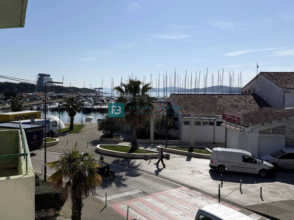 VODICE, Toplage, mitten im Zentrum, möbliertes Apartment, 50 m zur Strandpromenade, Meerblick