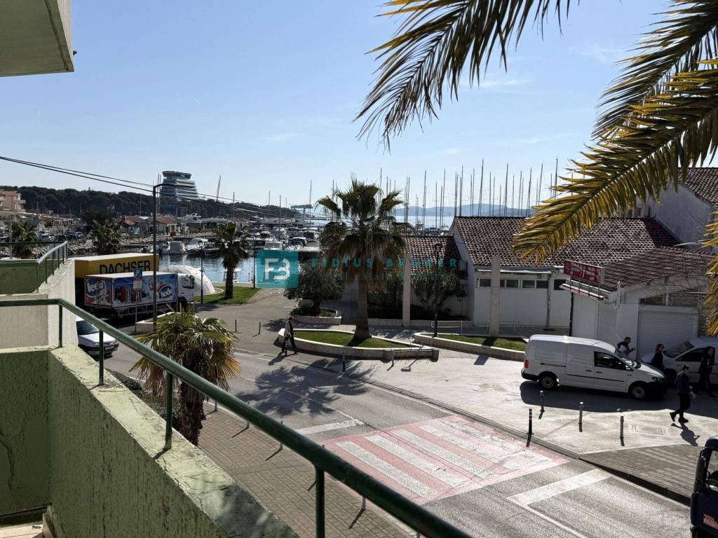 Die Wohnung S4 befindet sich im 2. Obergeschoss eines kleineren Wohnhauses mit nur 8 Wohneinheiten und einer Wohnfläche von 52,66 m². Sie wurde 2012 renoviert und ist nach Norden/Süden ausgerichtet. Die Wohnung besteht aus einem Flur, einem Abstellraum, einem Badezimmer, einem Schlafzimmer, einer Wohnküche und einem Wohnzimmer mit Zugang zu einem Balkon mit herrlichem Meerblick. Sie verfügt über zwei Klimaanlagen (Schlafzimmer und Esszimmer). Ein gemeinsamer Kellerabstellraum und ein Fahrradkeller stehen zur Verfügung. Parkplätze befinden sich im gemeinschaftlichen Innenhof des Gebäudes.