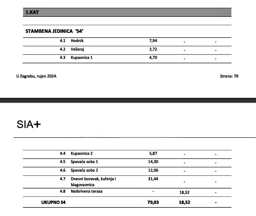 Die Wohnung S4 erstreckt sich über 79,03 m2 Wohnfläche und befindet sich im 1. Stock eines Wohngebäudes mit Aufzug. Sie ist südostorientiert. Sie besteht aus 2 Schlafzimmern, einem offenen Wohnbereich mit Küche und Esszimmer, 2 Badezimmern mit WC, einem zusätzlichen Hauswirtschaftsraum, einem Eingangsflur sowie einer überdachten Terrasse mit einer Grundfläche von 18,52 m2. Zur Wohnung gehört außerdem ein Außenstellplatz. Die gesamte berechnete/verkaufsfähige Fläche der Wohnung beträgt 97,55 m2.