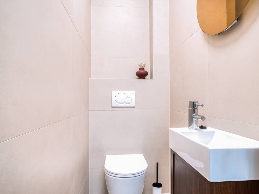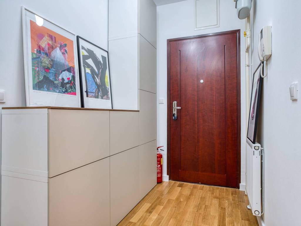 Stan je funkcionalno projektiran te se sastoji od ulaznog prostora s protuprovalnim vratima, prostranog i svijetlog dnevnog boravka s blagovaonicom i kuhinjom s ostavom, jedne spavaće sobe s bračnim krevetom i jedne manje sobe koja može biti namještena po potrebi najmoprimca, moderne kupaonice opremljene tušem i još jednog odvojenog toaleta.