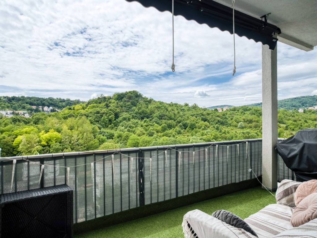 Prednost stana je i velika nenatkrivena terasa s koje se pruža prekrasan pogled prema Mlinovima, Šestinama i Medvedgradu.
