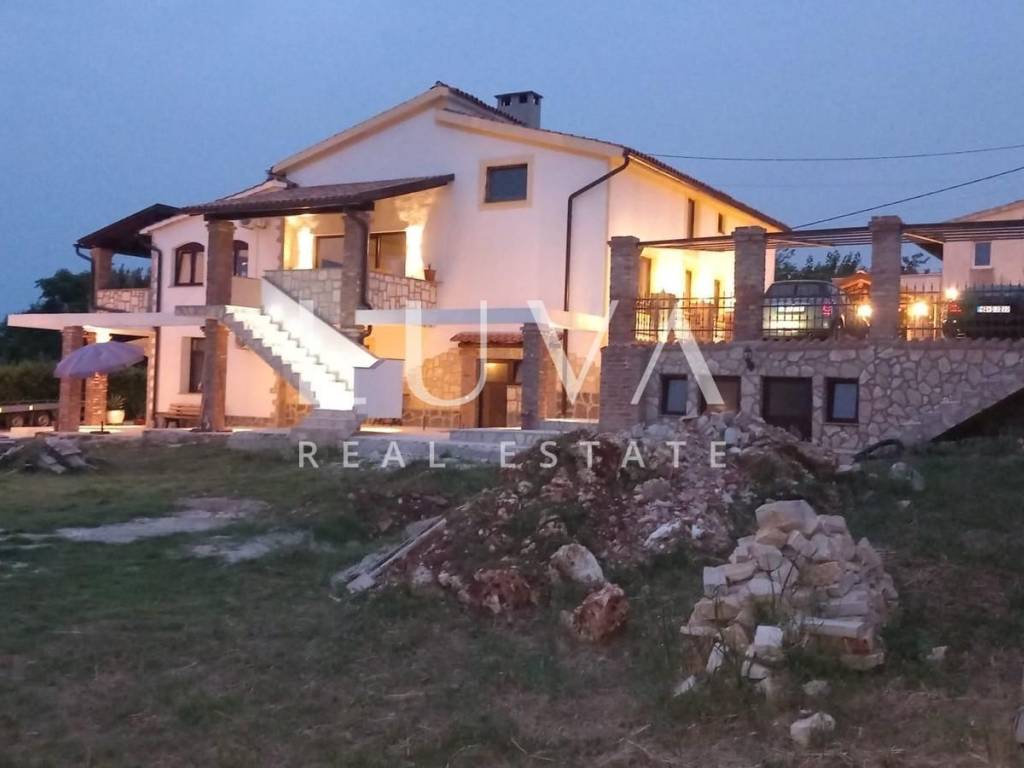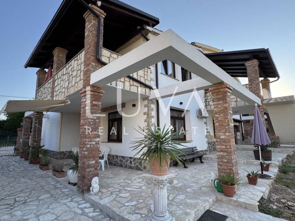 Beeindruckende 580m² Wohnfläche auf einem 1500m² Grundstück bieten außergewöhnliche Möglichkeiten. Die Immobilie enthält derzeit 3 voll ausgestattete Apartments, mit der Möglichkeit, ein viertes im Dachgeschoss zu bauen. Der Außenbereich umfasst einen geräumigen Parkplatz für 4-5 Fahrzeuge, eine Garage, begonnene Arbeiten für einen Pool, eine überdachte Terrasse mit Grill, ideal für Familientreffen, und einen authentischen Weinkeller, der einen besonderen Charme verleiht.