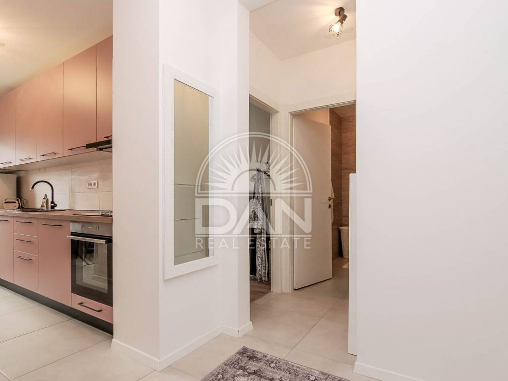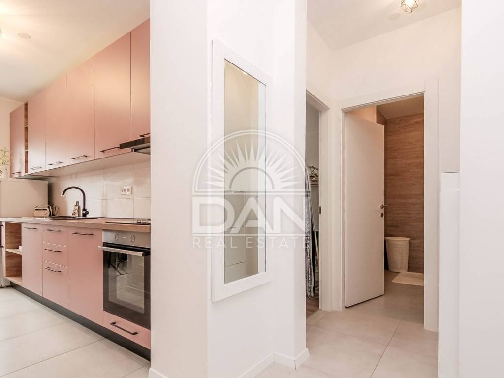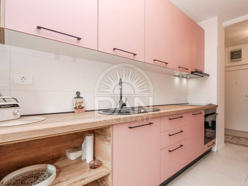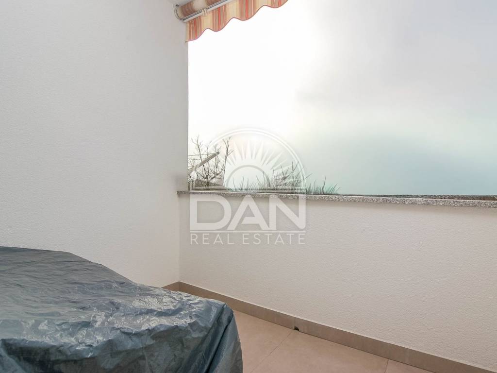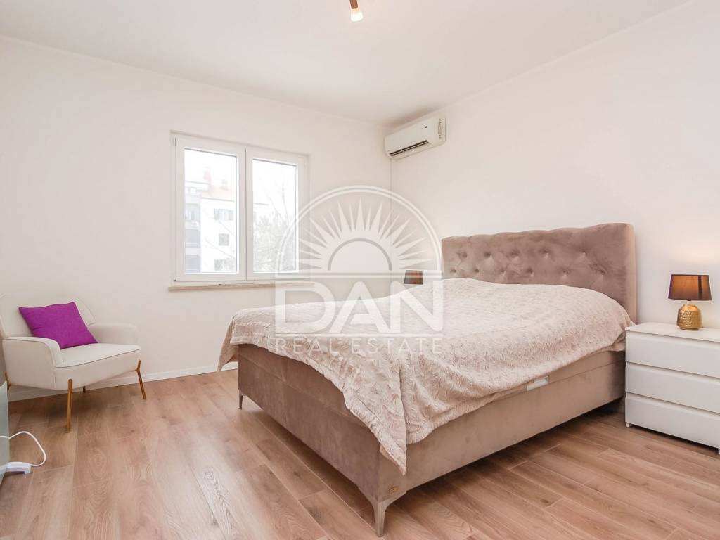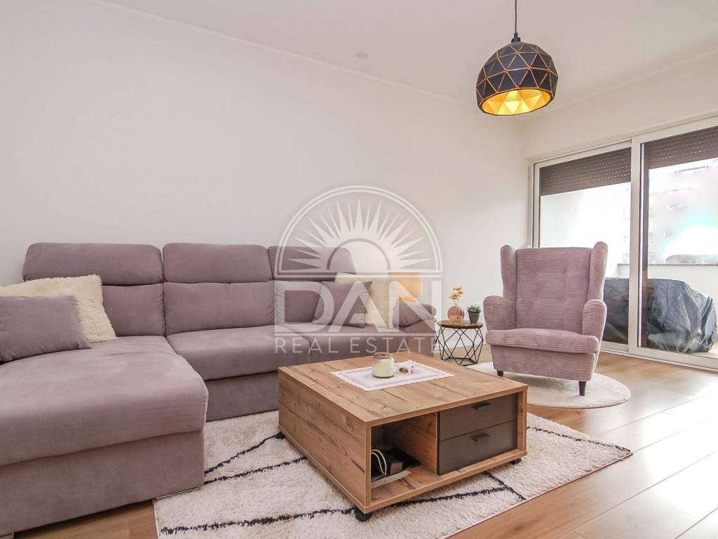 Die Wohnung wurde im Jahr 2023 vollständig und hochwertig renoviert. Im Zuge der Renovierung wurden neue PVC-Fenster und Türen eingebaut, das Badezimmer erneuert und die gesamte Wohnung modern und funktional gestaltet, sodass zukünftige Eigentümer ohne zusätzliche Investitionen einziehen können. Die Raumaufteilung ist klassisch und sehr komfortabel für den Alltag. Der Eingangsbereich führt zu einem geräumigen Schlafzimmer und einem schön renovierten Badezimmer, während sich auf der anderen Seite der Wohnung eine Küche mit Essbereich, ein Abstellraum sowie das Wohnzimmer befinden, von dem aus große Balkontüren auf die Terrasse führen. Die Wohnung ist angenehm, hell und sehr funktional und dank der südlichen Ausrichtung erhält sie das ganze Jahr über viel natürliches Licht und Wärme. Die Beheizung und Kühlung erfolgt über zwei Klimaanlagen, im Schlafzimmer befindet sich zusätzlich eine Heizung und im Badezimmer ein Wandheizkörper.