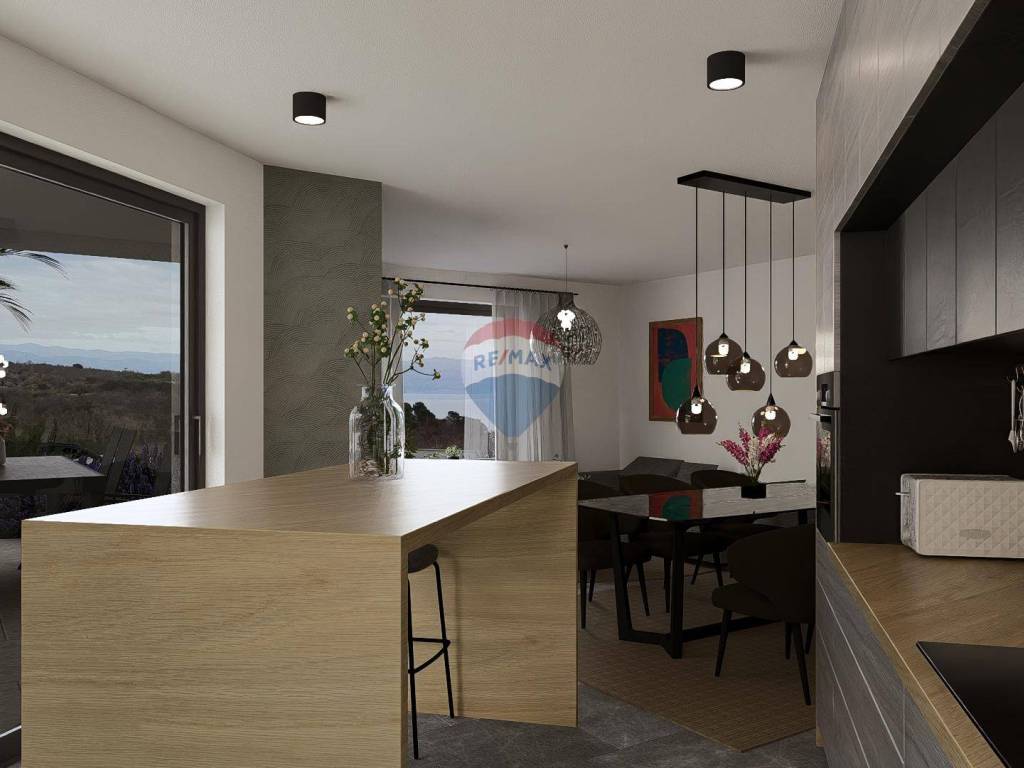 Moderne Erdgeschosswohnung in Neubau – Vrbnik, 350 m vom Meer entfernt Diese moderne Wohnung mit einer Wohnfläche von 103 m² befindet sich im Erdgeschoss eines hochwertigen Neubaus in ruhiger Lage in Vrbnik. Die Wohnung besteht aus einer offenen Küche mit Essbereich und Wohnzimmer, drei Schlafzimmern, zwei Badezimmern sowie einer Terrasse mit direktem Zugang zu einem großzügigen privaten Garten mit Swimmingpool, ideal zum Entspannen und Genießen. Die Immobilie zeichnet sich durch hochwertige Bauweise und Ausstattung, Klimaanlage sowie zwei private Parkplätze aus. Die Lage bietet viel Privatsphäre und einen schönen Ausblick, während das Meer nur 350 Meter entfernt ist. Die Immobilie befindet sich derzeit im Bau, die Fertigstellung ist für den Sommer 2026 geplant. Eine ausgezeichnete Gelegenheit als privates Feriendomizil oder als attraktive Investition zur touristischen Vermietung.