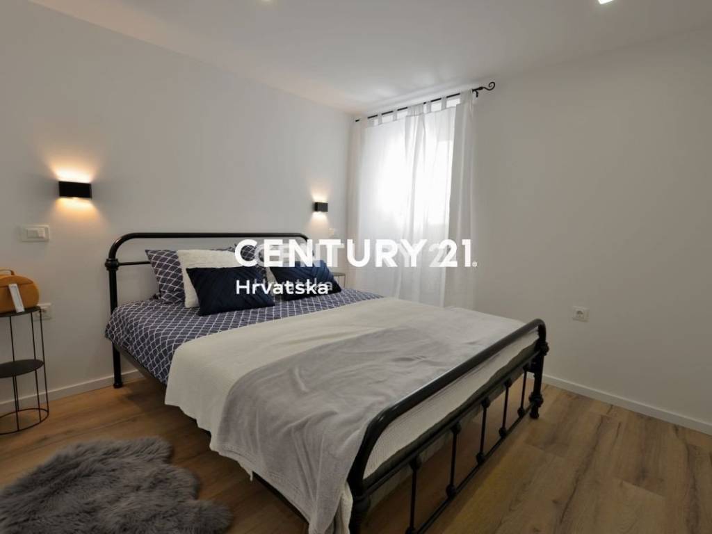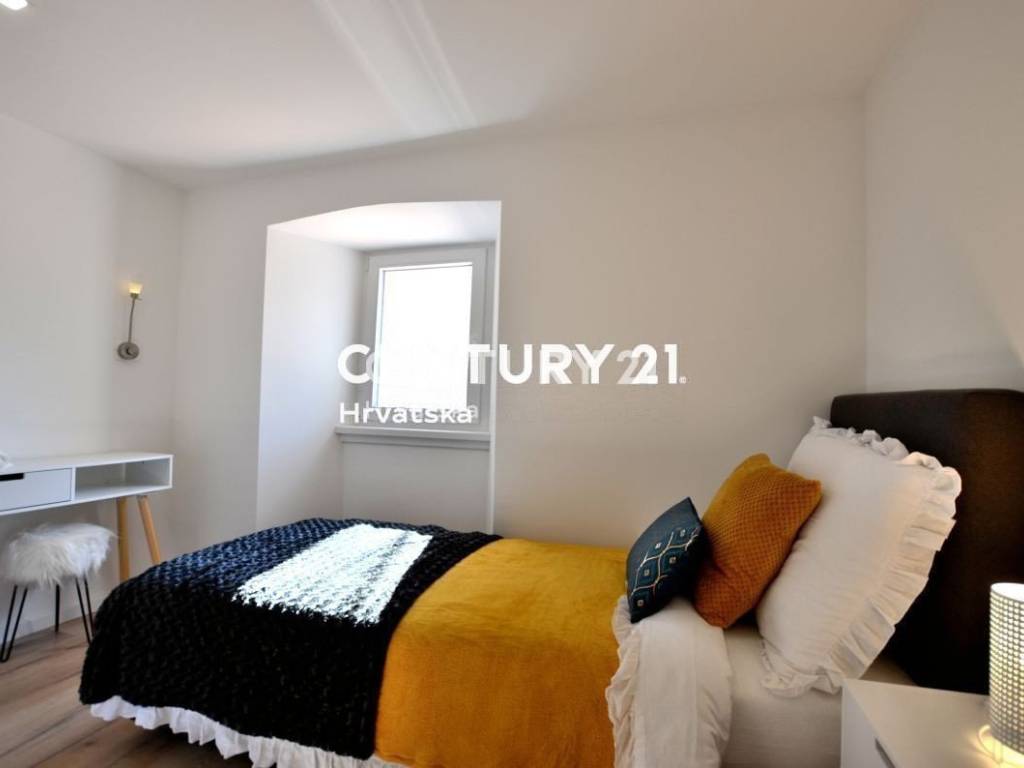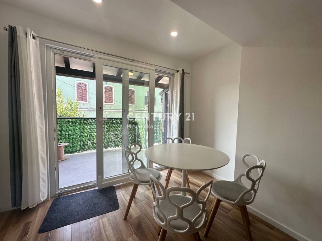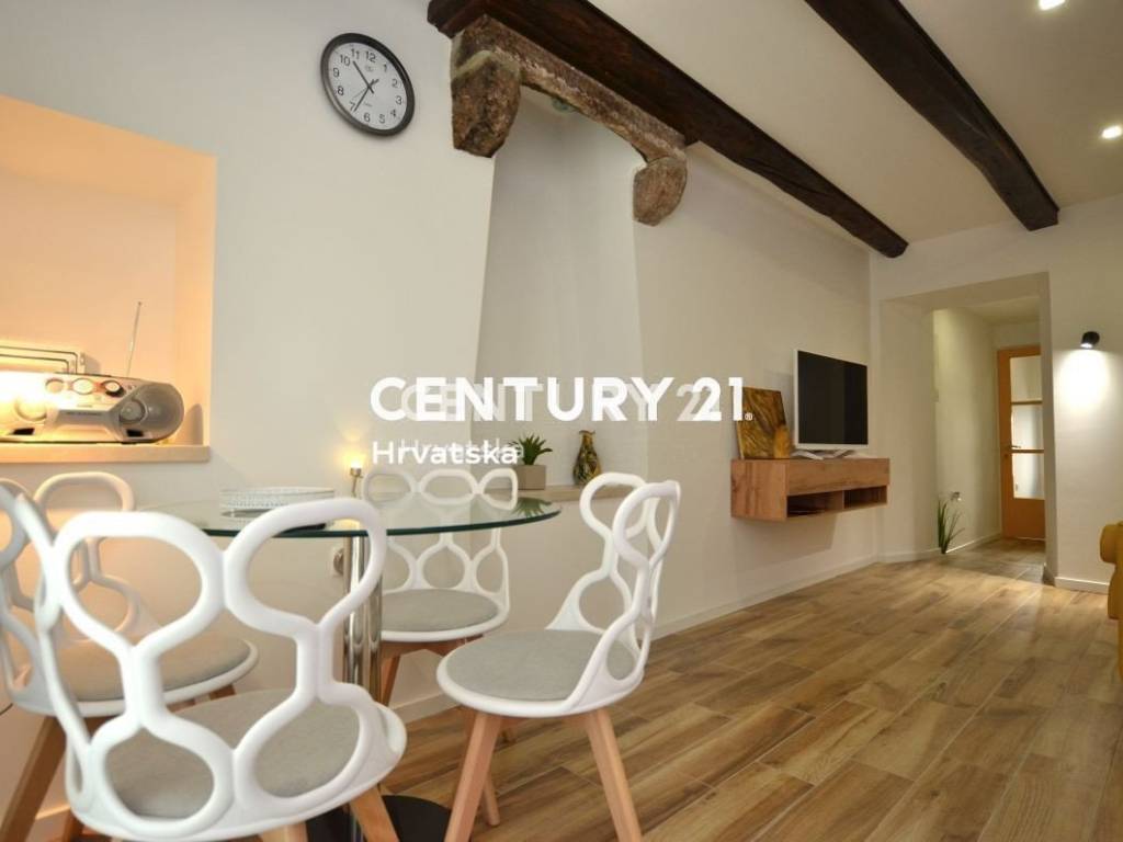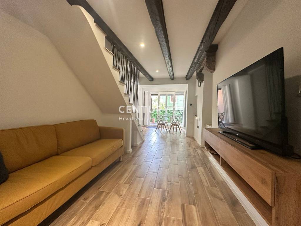 In der Nähe des historischen Stadtkerns von Pazin verkaufen wir ein renoviertes und komplett möbliertes Reihenhaus mit schönem Hof und einer Gesamtfläche von 106 m2 (überdachte Terrasse, Grünfläche, Parkplätze).