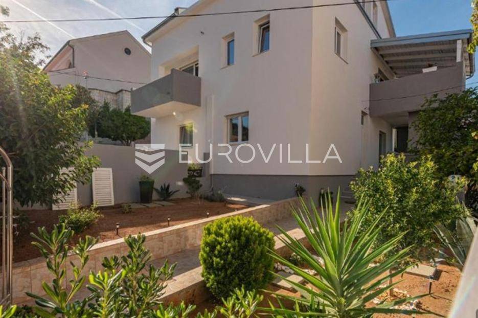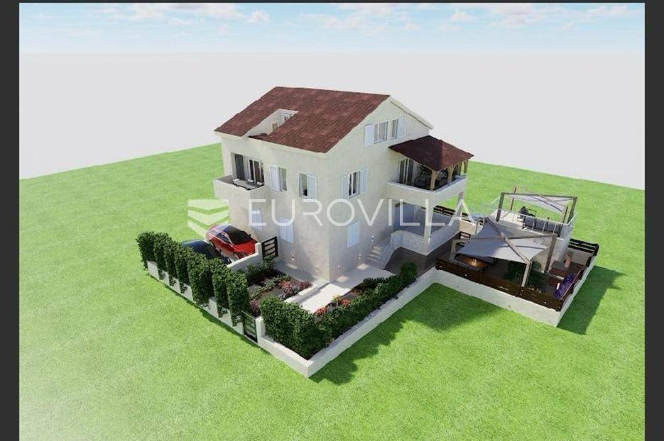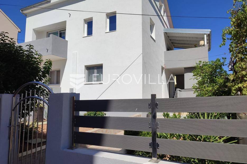 Preko, u staroj jezgri mjesta nalazi se kuća sa tri stana na zemljištu površine 400 m2.Prostire se na tri etaže, prizemlje, prvi kat i potkrovlje, a ima i pomoćni objekt površine 19 m2 u koji je dovedena potrebna infrastruktura.Svaki stan ima poseban ulaz što omogućava privatnost, a odvojena su elektična i vodovodna brojila za svaki stan.Stan u prizemlju sastoji se od dva hodnika, kuhinje, blagovaonice i dnevnog boravka otvorenog koncepta, tri spavaće sobe, kupaonice i gostinjskog wc-a. Stanu pripada i prostrana terasa, idealna za druženje i blagovanje na otvorenom.Na drugoj etaži nalazi se stan površine 50 m2, sa dvije spavaće sobe, kupaonicom, novouređenom modernom kuhinjom s izlazom na natkrivenu terasu s koje se pruža pogled na more i Ošljak.Treća stambena je jedinica je dvoetažna, nije do kraja uređena, visoki roh bau, površine 118 m2. Na prvoj etaži gdje se nalazi kuhinja, blagovaonica i dnevni boravak izlazi se na balkon s kojeg se pruža pogled na more i otok Ošljak. Na drugoj etaži stana panoramski pogled na more, Ošljak i grad Zadar pruža se sa prostrane krovne terase.U zgradnji su korišteni vrhunski materijali, a posljednja renovacija bila je 2022 godine.Grijanje i hlađenje osigurano je putem klima uređaja.Oprema:PVC stolarijaKomarniciKlima uređajiVelux krovni prozoriMediteranski tondach crijepMediteranski kamen u dijelu dvorištaKvalitetne sanitarije i keramika u kupaonicamaDvorište je uređeno u mediteranskim biljem i zelenilom. Idealno je za druženje na otvorenom uz roštilj.Osiguran je parking za četiri automobila.Izvrsna lokacija u centru mjesta te blizina mora od svega 50 metara udaljenosti ovu nekretninu čini izvrsnom prilikom na tržištu nekretnina.Uredno vlasništvo.Stojimo Vam na raspolaganju za dodatne informacije.... Više na eurovilla.hr, ID: 466649