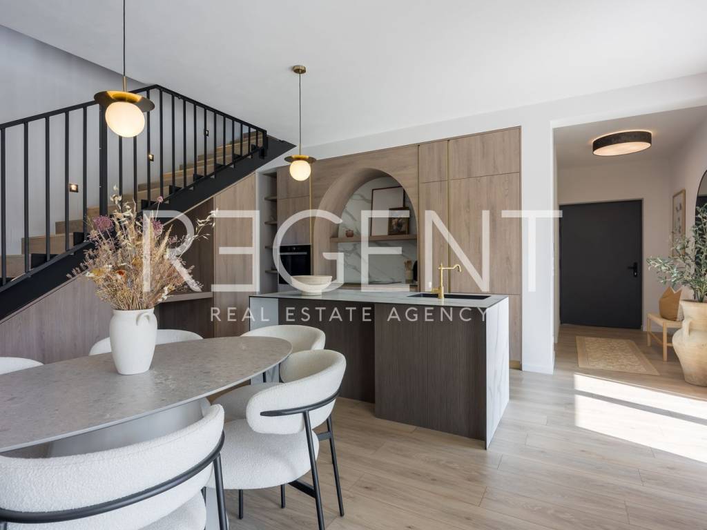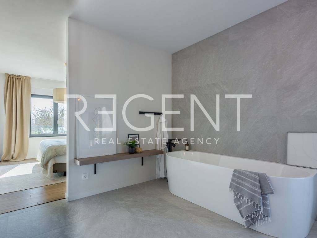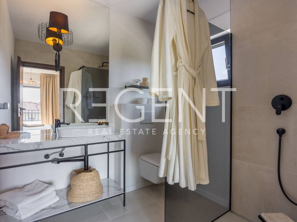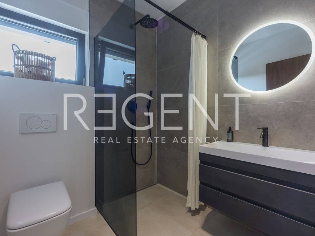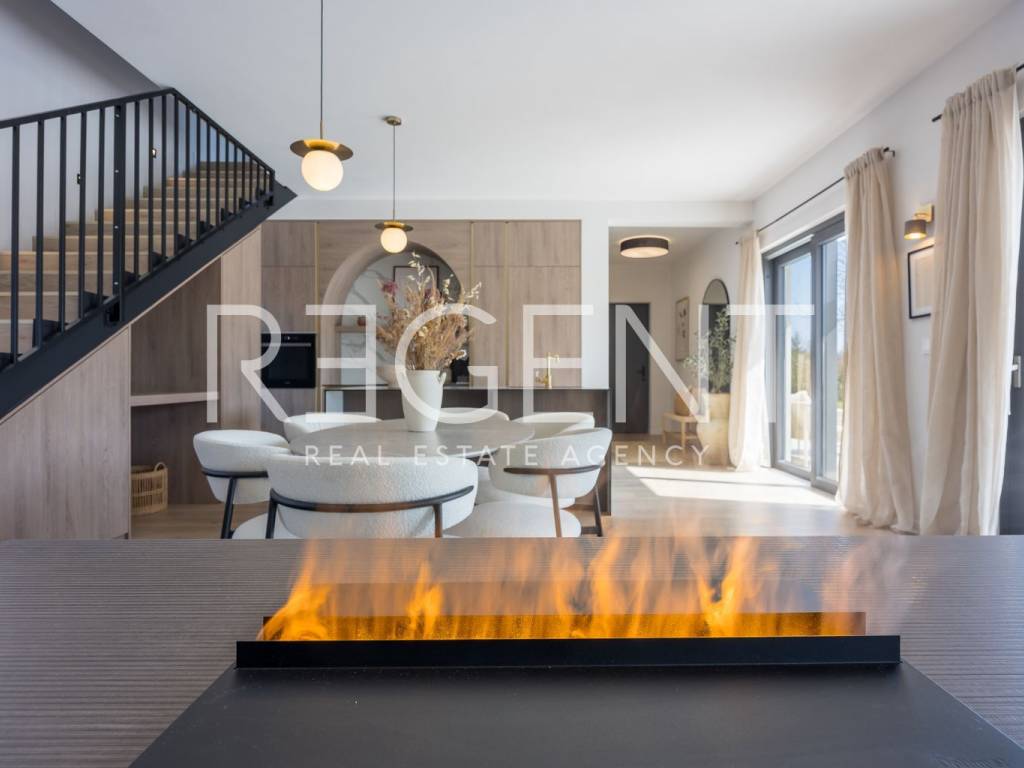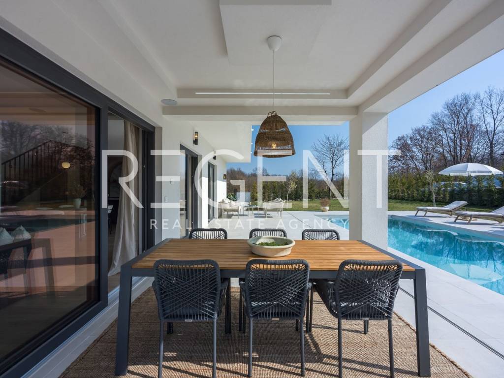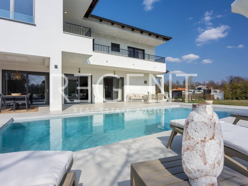 In einem ruhigen Teil Istriens, nicht weit vom Zentrum von Svetvinčenat entfernt, befindet sich eine moderne, freistehende Villa, die eine ideale Kombination aus Privatsphäre, modernem Design und hochwertiger Ausstattung bietet. Das Haus ist komplett eingerichtet und möbliert und bezugsfertig oder für die touristische Vermietung geeignet. Die gesamte Nutzfläche des Hauses beträgt 165,04 m² und verteilt sich auf zwei Etagen – Erdgeschoss und erster Stock. Im Erdgeschoss befinden sich ein Eingangsbereich (2,56 m²), ein Gäste-WC (1,92 m²), ein Hauswirtschaftsraum (7,30 m²), eine Garderobe (3,60 m²) sowie ein großzügiger Wohnbereich, der aus einer Küche mit Essbereich (32,25 m²) und einem Wohnzimmer (22,45 m²) besteht. Der Wohnbereich ist mit einer überdachten Terrasse (14,68 m²) und einem überdachten Durchgang (1,05 m²) verbunden, die zum gepflegten Garten und Pool führen. Im ersten Stock befinden sich drei Schlafzimmer (18,67 m², 14,63 m², 13,13 m²) und drei Badezimmer (8,48 m², 3,70 m², 4,52 m²), sowie ein Flur (12,31 m²) und eine weitere überdachte Terrasse (3,79 m²). Die Raumaufteilung gewährleistet Privatsphäre und Funktionalität, was dieses Haus sowohl für das Familienleben als auch als Investition für die touristische Vermietung geeignet macht. Das Haus ist mit einer Bosch-Wärmepumpe mit Fußbodenheizung ausgestattet, während zur Kühlung ein Gebläsekonvektorensystem installiert ist. Im Wohnzimmer befindet sich ein Kamin, und ein eingebautes Master-Sound-System bietet einen zusätzlichen Mehrwert. Die Badezimmer verfügen über moderne Einbauduschen. Auf dem Grundstück befindet sich ein beheizter Pool mit Salzwassersystem, ideal für die Nutzung während des größten Teils des Jahres. Der Garten ist komplett angelegt – Rasen und Zypressen wurden gepflanzt, und ein automatisches Bewässerungssystem ist installiert. Der Eingang zum Hof ist für die automatische Öffnung des Tores vorbereitet (der Einbau eines Motors ist erforderlich). Das Haus wird komplett möbliert verkauft, mit einem sorgfältig ausgewählten Interieur, das den modernen Stil und die Funktionalität der Räume widerspiegelt. Svetvinčenat ist einer der bekanntesten Orte in Zentralistrien, bekannt für seine authentische Atmosphäre, sein kulturelles Erbe und seine gute Verkehrsanbindung an die Küste und die größeren istrischen Städte. Die Umgebung bietet Ruhe, Natur und Privatsphäre, was diesen Standort sowohl für das Wohnen als auch für eine touristische Investition sehr attraktiv macht. Für weitere Informationen und zur Vereinbarung einer Besichtigung kontaktieren Sie uns bitte.
