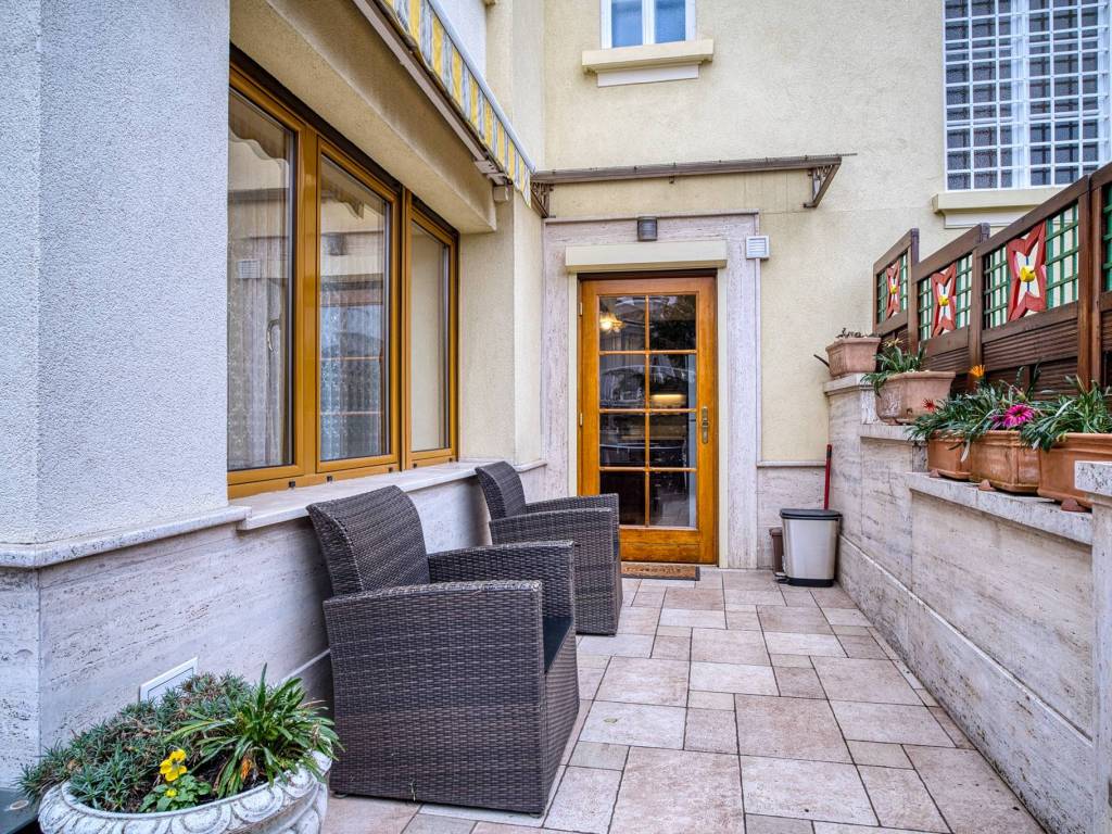 Stan je jako dobro opremljen kvalitetnim namještajem, kuhinjskim opremom, električnim roletama na modernim prozorima. Vanjski prostor se sastoji od velika terase s direktnim izlazom u uređenog vrta koji je na raspolaganju najmoprimcima.