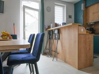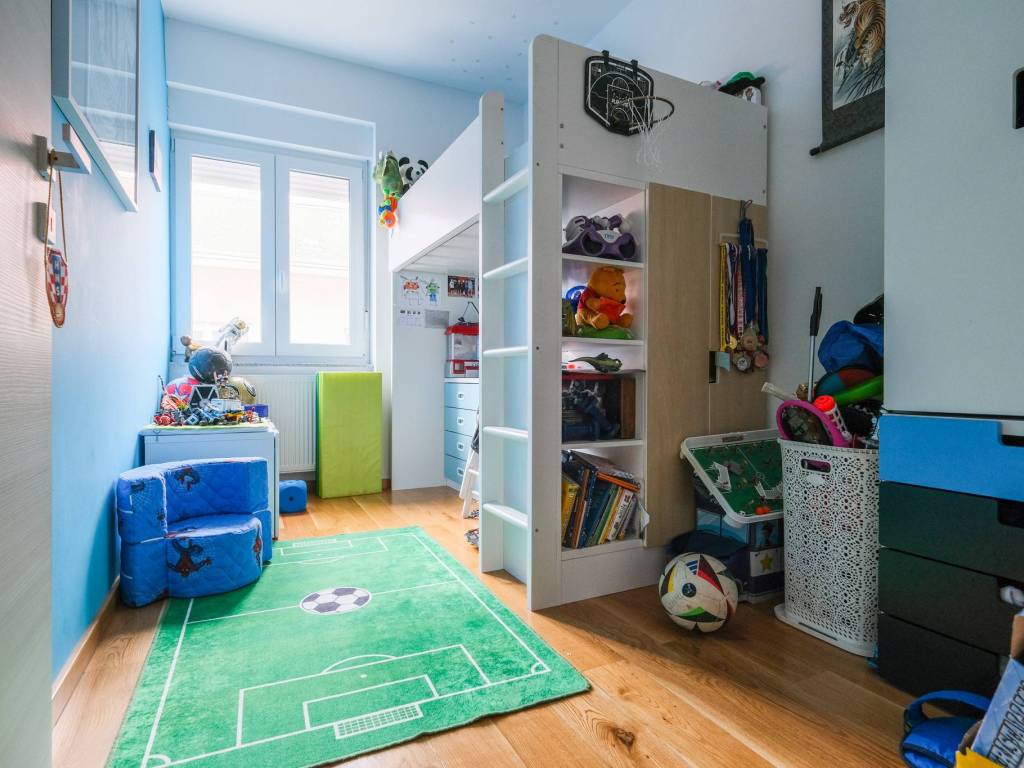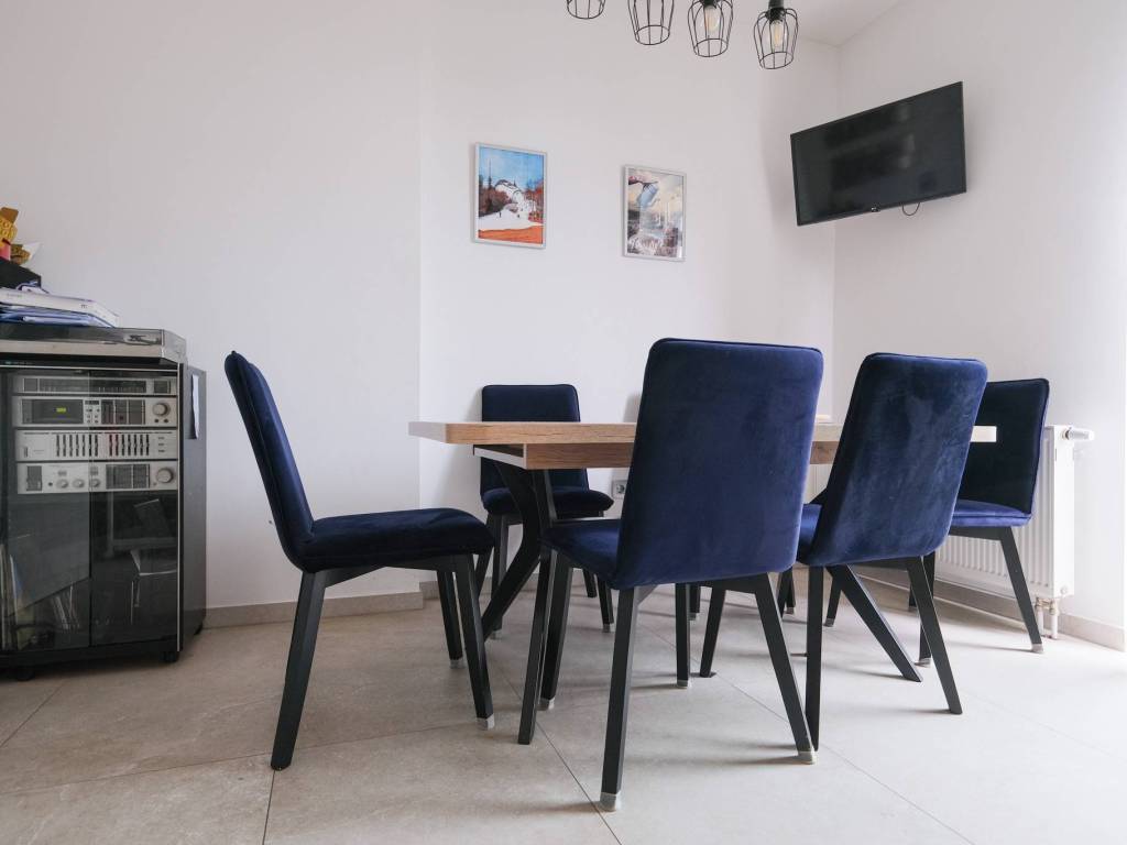 Prodaje se namješten, a opremljen je i klima uređajem, protuprovalnim vratima, PVC stolarijom, ugradbenim ormarima, perilicama, TV-om, pećnicom, hladnjakom sa škrinjom, štednjakom, mikrovalnom pećnicom, portafonom i sl.