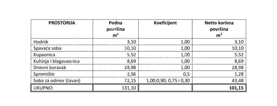 Iz hodnika se polukružnim stepenicama penje u potkrovlje tj. otvoreni prostor veličine 72.15 m2 ( obračunski 43.8 m2).
