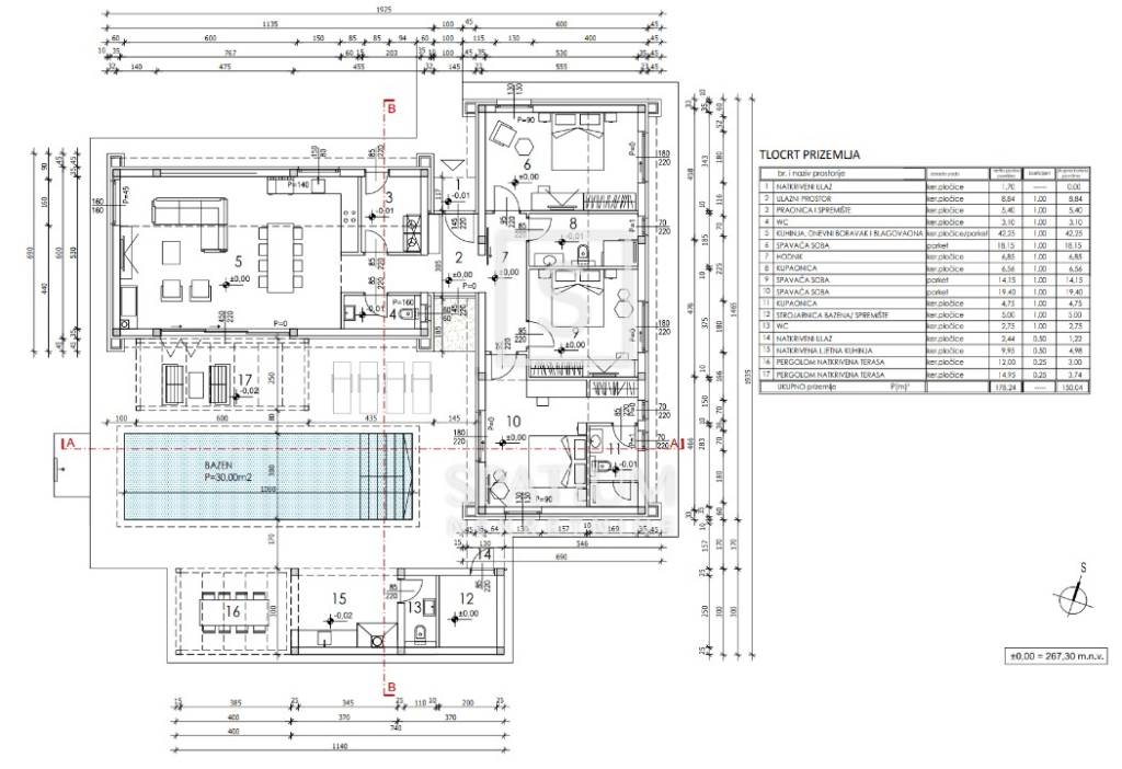 • Der Bebauungsplan ermöglicht den Bau von Einfamilienhäusern und Ferienhäusern mit Pool (Geschosse: Erdgeschoss + 1. Obergeschoss + Dachgeschoss).