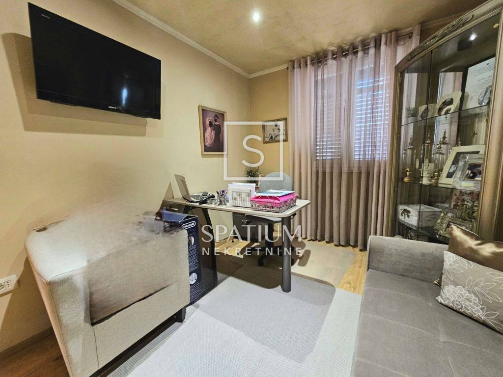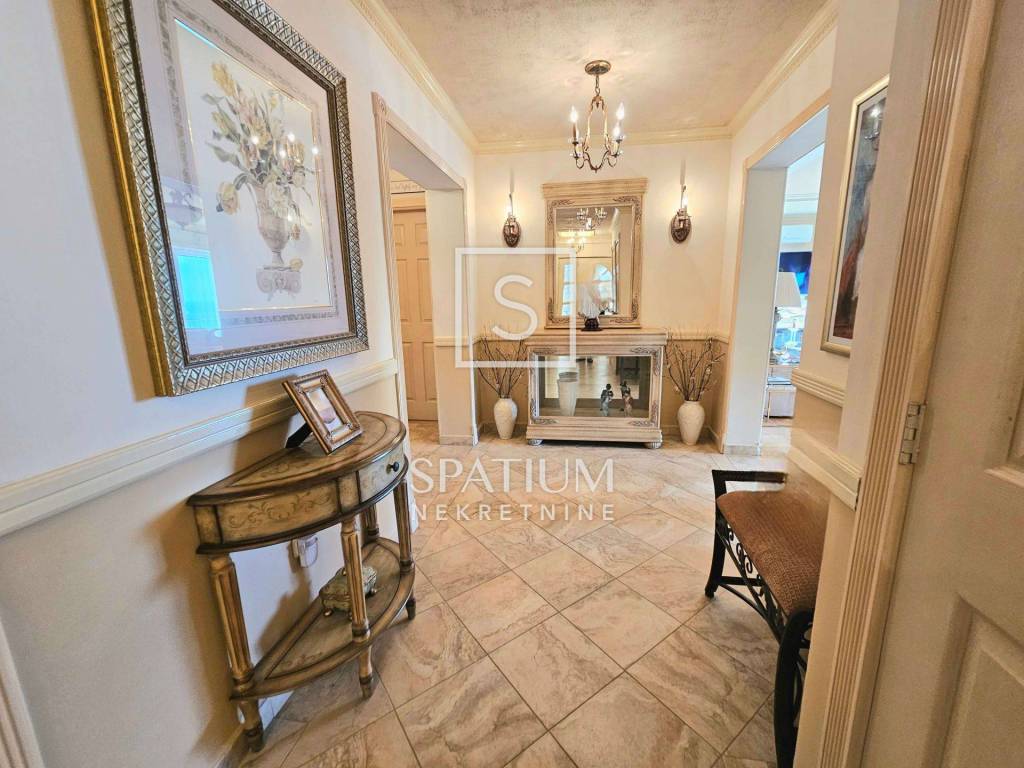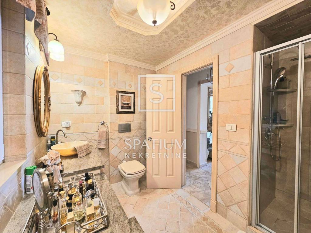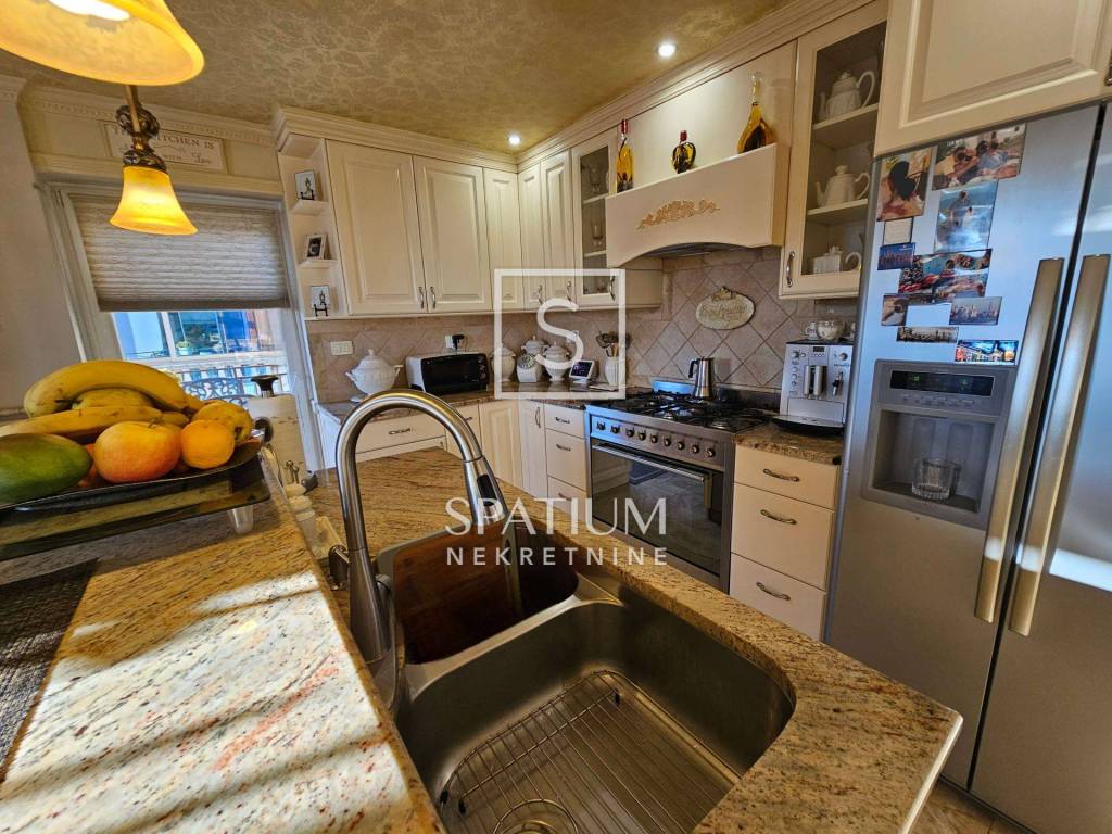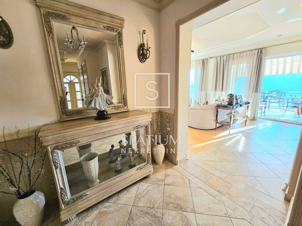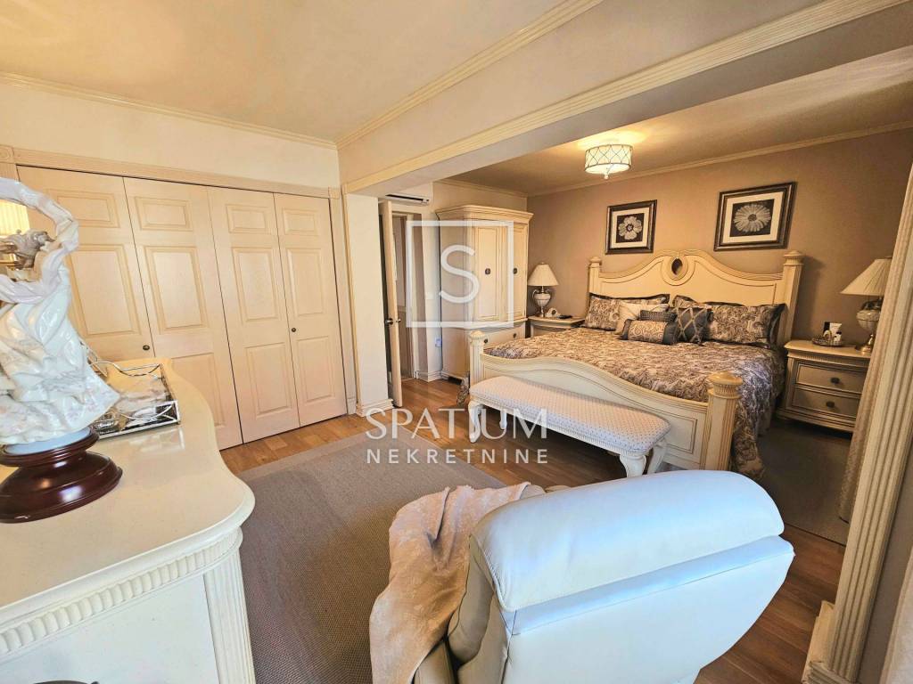 Das Penthouse ist mit hochwertigen Materialien ausgestattet. Die Möbel, Fliesen und Parkettböden wurden 2005 maßgefertigt und aus den USA importiert, was den Räumen zusätzliche Eleganz und Einzigartigkeit verleiht.