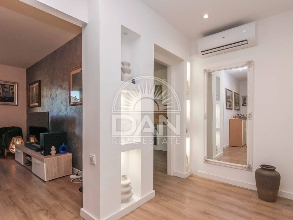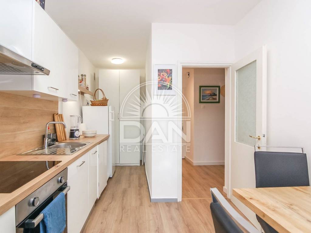 Die Wohnung wurde kürzlich vollständig renoviert. Dabei wurden zahlreiche Arbeiten durchgeführt – neue Außenfenster und Türen wurden eingebaut, Böden und Wände wurden nivelliert, und der Flur wurde mit einer abgehängten Decke und modernen Beleuchtungselementen optisch aufgewertet. Das gesamte Interieur wurde mit viel Sorgfalt und Geschmack gestaltet und schafft eine warme und moderne Wohnatmosphäre.