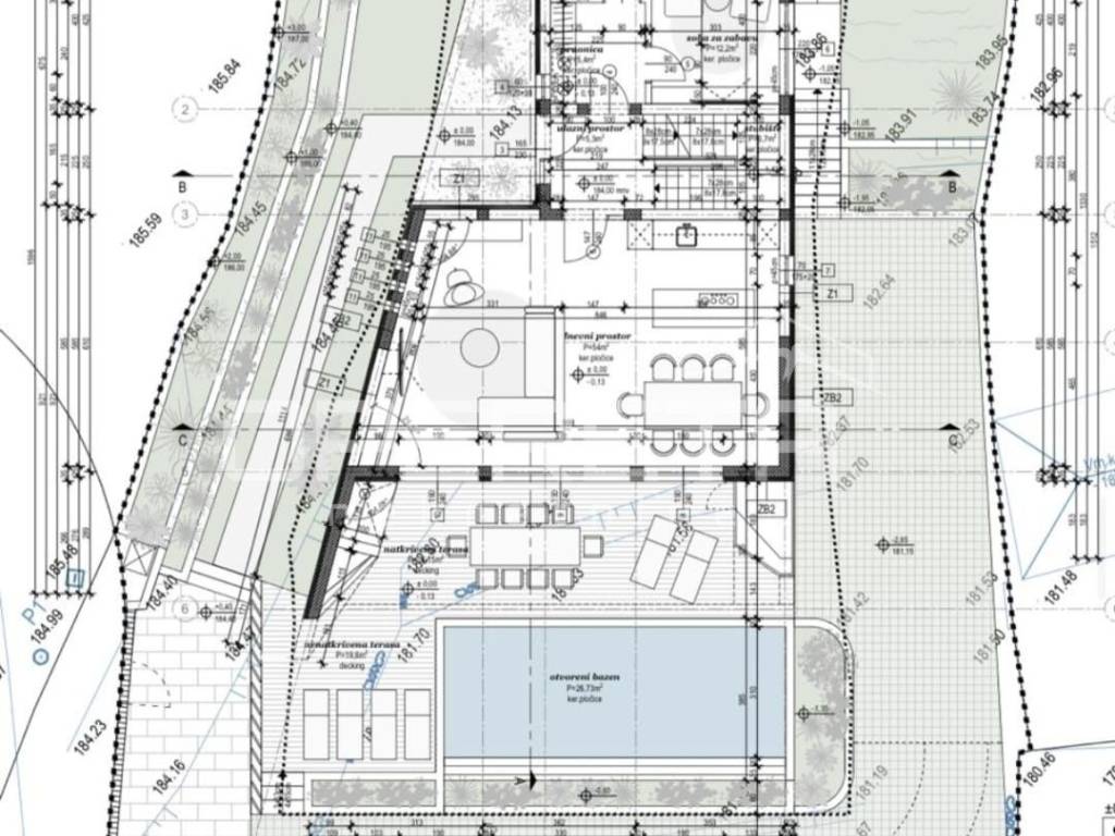 In einzigartiger Panoramalage oberhalb von Split, in Klis, befindet sich ein exklusives Baugrundstück mit einer Fläche von 580 m und einem Projekt für den Bau einer modernen Luxusvilla mit Pool und Garage, sorgfältig konzipiert, um den spektakulären Blick auf die Stadt, das Meer und die dalmatinischen Inseln optimal zu nutzen.