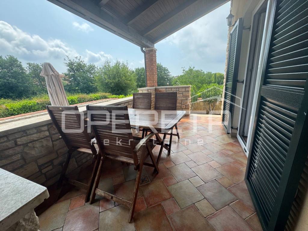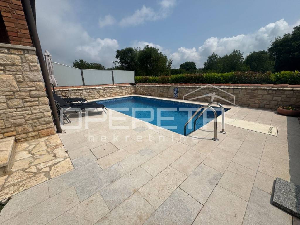 Wunderschönes Doppelhaus in Lovrečica 300 m vom Meer, mit Pool und Garage, möbliert zum Verkauf Entdecken Sie die perfekte Kombination aus Luxus, Natur und Komfort in diesem charmanten Doppelhaus, das in einer ruhigen grünen Oase liegt, nur 300 m vom kristallklaren Adriatischen Meer und einem wunderschönen Strand entfernt. Nur 6 km vom Zentrum von Umag, ideal für einen dauerhaften Wohnsitz, luxuriöse Ferien oder Premium-Tourismusvermietung. Exklusiver Raum und Architektur Gesamtfläche: 145 m Grundstück: 214 m gepflegte Grünflächen Doppelhaus auf zwei Etagen mit authentischen Steindetails Keller/Garage: 32,5 m für Fahrzeuge und zusätzlichen Stauraum Erdgeschoss Ort zum Genießen und Entspannen Großzügiges Wohnzimmer mit offenem Essbereich und Küche Elegantes Badezimmer Zwei überdachte Terrassen mit Grill und luxuriösen Gartenmöbeln Privater Pool von 25 m mit Sonnendeck und gepflegtem Garten Obergeschoss Privater Ruhebereich 3 komfortable Schlafzimmer Badezimmer mit modernen luxuriösen Elementen Zugang über das Innentreppenhaus Zusätzliche Annehmlichkeiten Eigener überdachter Parkplatz Das Haus wird komplett möbliert verkauft bezugsfertig Ideal für luxuriöse Ferien, dauerhaften Wohnsitz oder Premium-Tourismusvermietung Unbestreitbare Vorteile Nur 300 m vom Meer und Strand entfernt Ruhe und Privatsphäre in natürlicher Umgebung Grundstück ideal zum Entspannen, für Gartenaktivitäten und Unterhaltung Garage und Lagerraum im Keller Attraktive Investition in einer exklusiven istrischen Destination