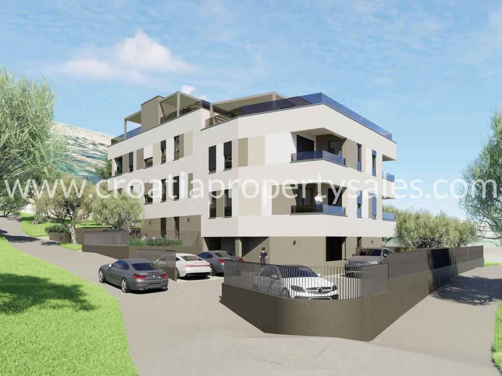 Apartments in einer modernen Wohnanlage in einem sorgfältig ausgewählten Teil von Podstrana, in der Nähe bekannter Strände und nur wenige Autominuten südlich von Split. Die Gebäude liegen nur 250 m von einem ruhigen Strand und einer Promenade mit Restaurants und weiteren Annehmlichkeiten entfernt und sind somit ideal zum Wohnen und für touristische Zwecke. Es handelt sich um zwei Doppelhäuser mit Gewerbe- und Wohnnutzung und insgesamt 10 Wohnungen: GEBÄUDE A WOHNUNG PPA 40 m2 184.000 EURWOHNUNG 1 69 m2 281.000 EURWOHNUNG 2 91 m2 389.000 EURWOHNUNG 3 60 m2 263.000 EURWOHNUNG 4 57 m2 251.000 EUR GEBÄUDE B WOHNUNG 1 92 m2 376.000 EURWOHNUNG 2 64 m2 273.000 EURWOHNUNG PPB 40 m2 180.000 EURWOHNUNG 3 85 m2 VERKAUFTWOHNUNG 4 50 m2 223.000 EUR Die Wohnungen haben eine Deckenhöhe von 2,6 m und das Treppenhaus befindet sich im Zentrum des Gebäudes. Jede Wohnung verfügt über eine Loggia oder einen Balkon und ist mit einbruch- und schalldichten Türen, einer Video-Gegensprechanlage und TV-Anschlüssen in jedem Zimmer ausgestattet. Die Fenster sind mit elektrischen Rollläden und Insektenschutzgittern versehen, die Badezimmer verfügen über Fußbodenheizung. Jede Wohnung ist klimatisiert. Die Wohnungen in den oberen Etagen haben Zugang zu einer Dachterrasse mit Vorbereitung für die Installation einer Pergola sowie Strom- und Wasseranschlüssen. Die Wohnungen im Erdgeschoss verfügen über großzügige Gärten mit einheimischen mediterranen Pflanzen.
