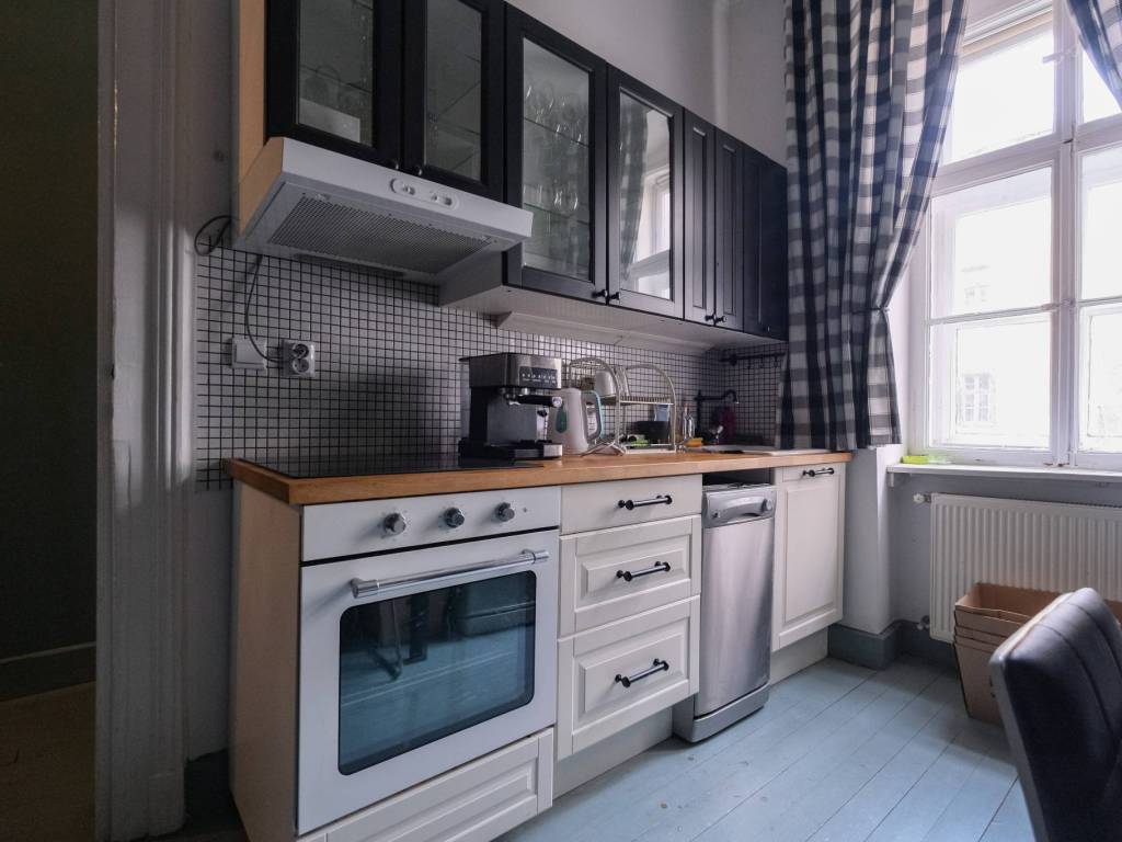 Prostor je djelomično namješten, a od namještaja ostaje kuhinja izrađena po mjeri s pripadajućim uređajima.