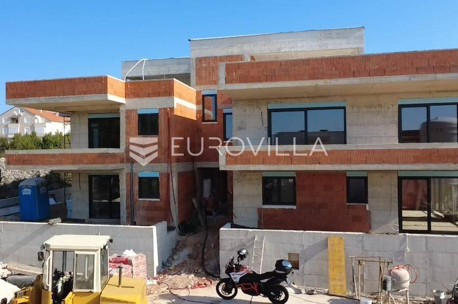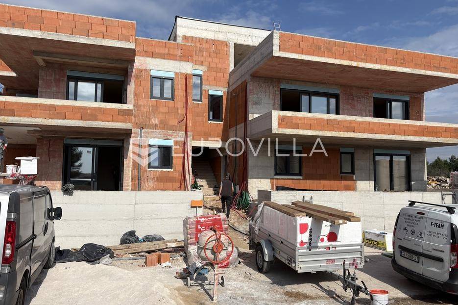 Vodice, NOVOGRADNJA, prekrasan trosoban, dvoetažan stan s krovnom terasom, bazenom i pogledom na more, ukupne neto korisne površine 143,63 m². Zatvorena površina stana iznosi 84,59 m². Stanu pripada i jedno parkirno mjesto.Sastoji se od dnevnog boravka s kuhinjom i blagovaonicom, tri spavaće sobe te dvije kupaonice. Iz dnevnog boravka izlazi se na natkrivenu terasu od 24,48 m². Unutarnjim stepenicama dolazi se na krovnu terasu površine 120,27 m² od čega je 39,16 m² natkriveno, te će se tamo nalaziti ljetna kuhinja i prostor za druženje i objedovanje. Na terasi se nalazi i bazen, te se s terase pruža pogled na more.Stan je odlično opremljen, a osim bazena na krovnoj terasi izdvojili bismo vrhunsku stolariju, podno grijanje u boravku i kupaonicama, kvalitetna toplinska izolacija, klima uređaji u svakoj sobi te protuprovalna vrata.Ovaj stan predstavlja odličnu priliku za one koji žele komfornu, modernu i dugoročno sigurnu investiciju, bilo za život, odmor ili turistički najam. Gradnja će biti završena do ljeta 2026. godine.Za sve dodatne informacije i dogovor razgledavanja, stojimo na raspolaganju.... Više na eurovilla.hr, ID: 943839