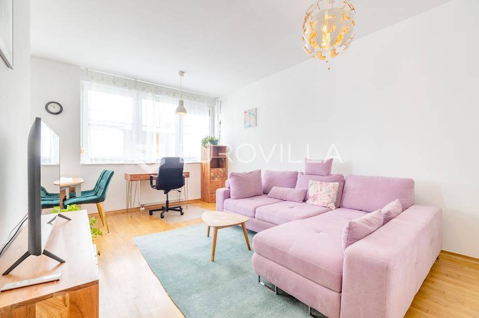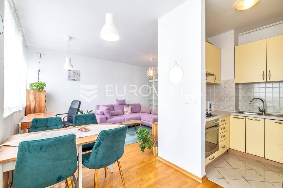 Atraktivan dvosoban stan ukupne zatvorene površine od 55 m² smješten je na trećem katu dobro održavane zgrade koja je opremljena liftom. Stan je funkcionalno raspoređen te nudi prostranost i udobnost potrebnu za ugodan život.Prostor stana čine ulazni hodnik, ostava, moderna kupaonica, prostrani i svijetli dnevni boravak, spavaća, blagovaonica, te kuhinja. Stan također ima balkon.Uz stan dolazi i garažno parkirno mjesto na etaži -1, površine 18,12 m² (9,06 m2). Ukupno obračunski 64,06 m2.Stan je opremljen kvalitetnom PVC stolarijom, video portafonom za dodatnu sigurnost, te klima uređajem. Orijentacija stana je prema sjeveru.Smješten je na odličnoj lokaciji u blizini svih bitnih sadržaja poput trgovina, javnog prijevoza, škola, vrtića, parkova i drugih potrebnih sadržaja za svakodnevni život, čineći ga idealnim izborom za one koji traže praktičnost i udobnost u urbanom okruženju.Za sva pitanja Vam stojimo na raspolaganju.... Više na eurovilla.hr, ID: 947983