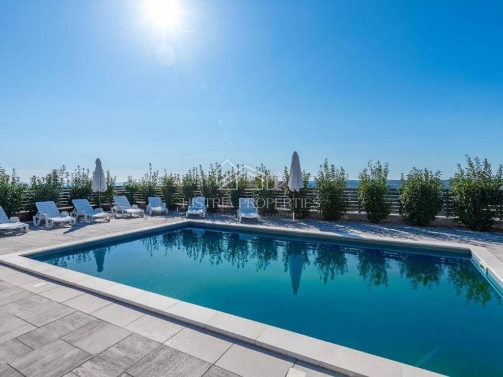 Ein großer Pool mit angrenzender Liegewiese sowie eine Sommerküche mit Blick auf die malerischen istrischen Städte und Strände runden Ihren Aufenthalt ab und sorgen für maximalen Komfort während Ihres Sommerurlaubs.