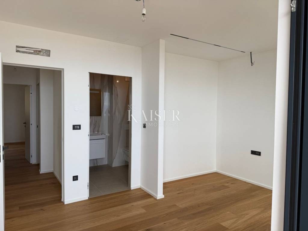 Die 123 m² große Wohnung ist in einem modernen Open-Space-Konzept gestaltet, das Wohnzimmer, Esszimmer und Küche harmonisch miteinander verbindet und so ein großzügiges und elegantes Ambiente voller Licht schafft. Die Wohnung verfügt über drei komfortable Schlafzimmer, jeweils mit eigenem Bad, ein zusätzliches Gäste-WC und einen praktischen Abstellraum. Der offene Grundriss ermöglicht ein natürliches Raumgefühl und eine nahtlose Verbindung zwischen Innen- und Außenbereich.