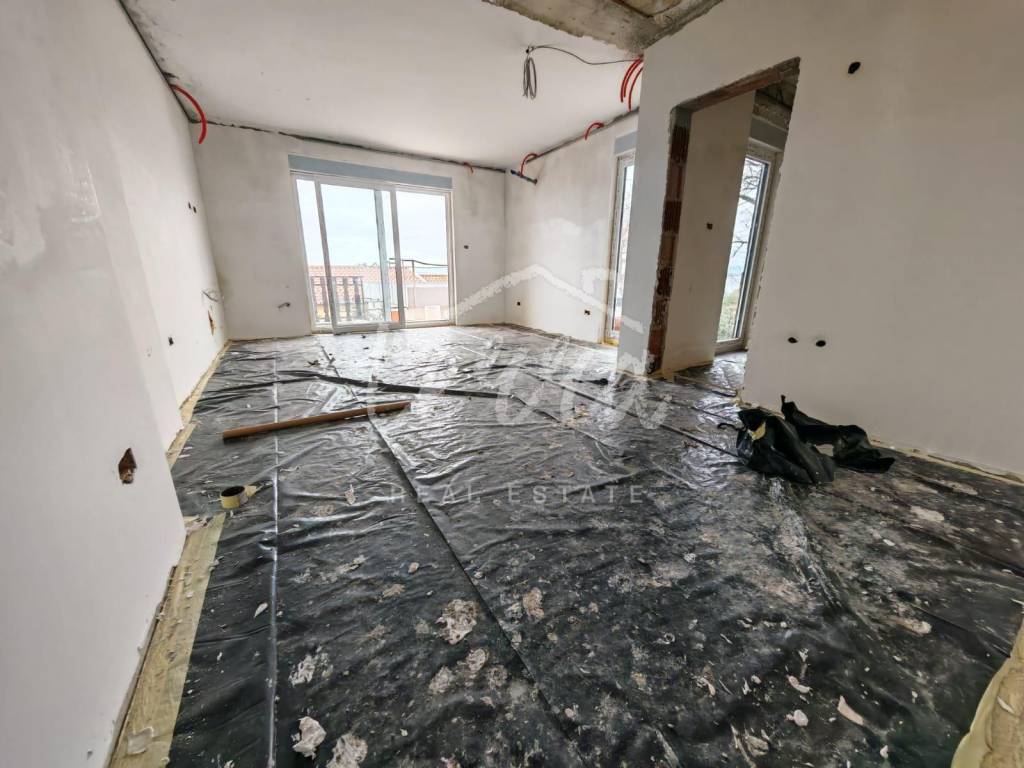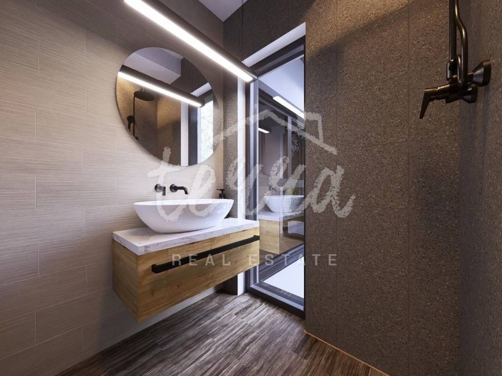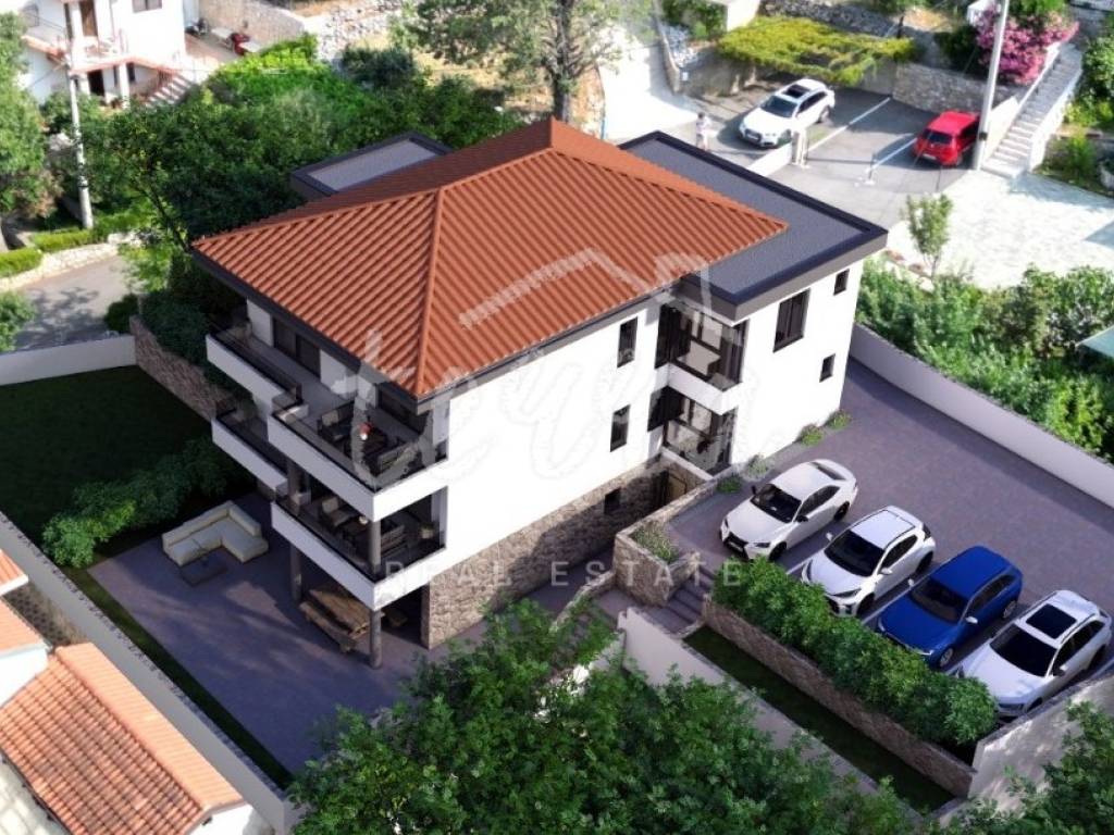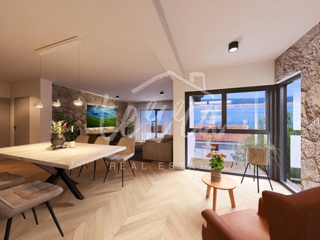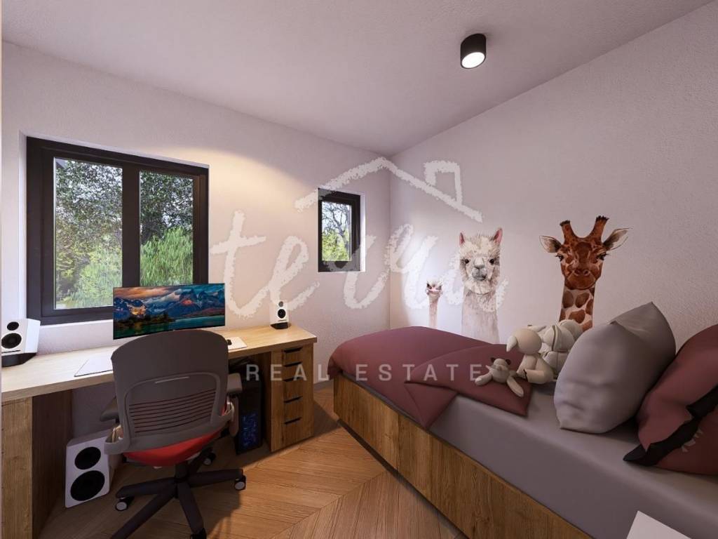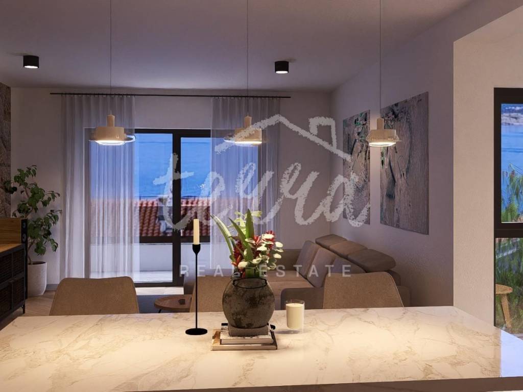 Die Wohnung verfügt über zwei komfortable Schlafzimmer, ein Badezimmer, eine Küche mit Essbereich und ein Wohnzimmer mit Zugang zu einer Terrasse mit Meerblick. Die Wohnung wird mit Fußbodenheizung und Klimaanlage ausgestattet sein und verfügt über einen Außenstellplatz. Zur Wohnung gehört außerdem ein 70 m² großer Garten.