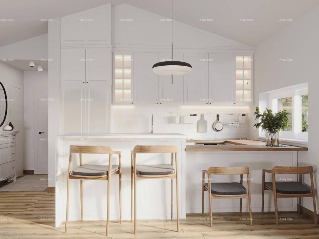 Schlüsselfertige Übergabe: 01.06.2025. Haus B: Elektrische Fußbodenheizung im ganzen Haus. Klimaanlagen in jedem Zimmer und im Wohnzimmer. Zwei Schlafzimmer (eines mit eigenem Bad), zusätzliches Bad, Hauswirtschafts-/Abstellraum. Offenes Konzept von Wohnzimmer, Essbereich und Küche mit Zugang zur Terrasse und Garten. Große Glasflächen, die viel Tageslicht bieten. Kamin im Wohnzimmer. Böden aus italienischen Keramikfliesen, maßgefertigte Innenausstattung. Außenschreinerei aus PVC mit Aluminiumrollläden in Anthrazit. Fassade aus 10 cm Styropor. Für weitere Informationen kontaktieren Sie uns bitte: Info: Azra Valjevac +385 91 611 57 06 Kontakt: Haris Valjevac +385 99 196 2863 E-Mail: azra@almadominvest.com