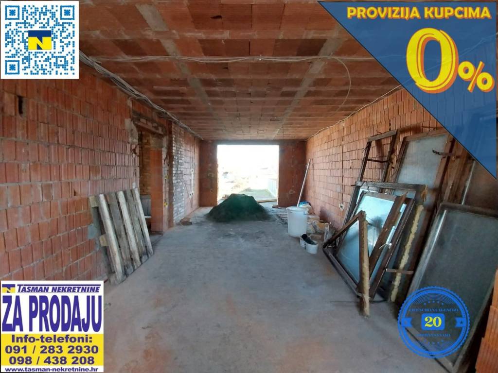 VISOKOPRIZEMNICA U JOSIPOVCU S PODRUMOM I TAVANOM!! ROH-BAU!! PLAC 671 M2!! PROVEDENE INSTALACIJE STRUJE, VODE I KANALIZACIJE!! DIZALICE TOPLINE!! SVAKA ETAŽA PO 100 M2!! CENTRALNO STUBIŠTE OD PODRUMA DO TAVANA!! MIRNA STAMBENA LOKACIJA!! Prodajemo roh-bau visokoprizemnicu u Josipovcu. Parcela na kojoj se kuća gradi iznosi 671 m2. Visokoprizemnica se sastoji od tri etaže, podruma (cca 100 m2), visokoprizemlja (100 m2) te tavana (oko 100 m2). Podrum, prizemlje i tavanski prostor povezani su stubištem. U podrumu se nalaze tri velike prostorije, dok se visokoprizemlje sastoji iz extra prostranog dnevnog boravka povezanog s kuhinjom i blagovaonicom s izlazom na dvorišnu terasu, hodnika, dvije spavaće sobe i kupatila. Nedavno su postavljene nove instalacije vode, struje i kanalizacije. Za grijanje je predviđen inovativni sustav na struju putem dizalica topline. - EXTRA MIRNA STAMBENA LOKACIJA! - BLIZINA OSNOVNE ŠKOLE! - BLIZINA VRTIĆA! - NEPOSREDNA BLIZINA GRADSKOG PRIJEVOZA! - NEPOSREDNA BLIZINA PARKA I DJEČJEG IGRALIŠTA! - BLIZINA TRGOVAČKOG CENTRA I TRŽNICE! - BLIZINA POŠTE! - BLIZINA LJEKARNE! -BLIZINA DOMA ZDRAVLJA! - BLIZINA BENZINSKE CRPKE! - DOKUMENTACIJA O VLASNIŠTVU JE UREDNA! - DETALJNIJI SLIKOVNI I TEKSTUALNI OPIS NEKRETNINE MOŽETE DOBITI DOLASKOM U NAŠ URED TRG SLOBODE 8, OSIJEK! PRODAJA I INFORMACIJE: 031/200-742 091/283-2930 098/438-208 tasmannekretnine@gmail.com VIŠE STAMBENIH KUĆA NA www.tasmannekretnine.hr
