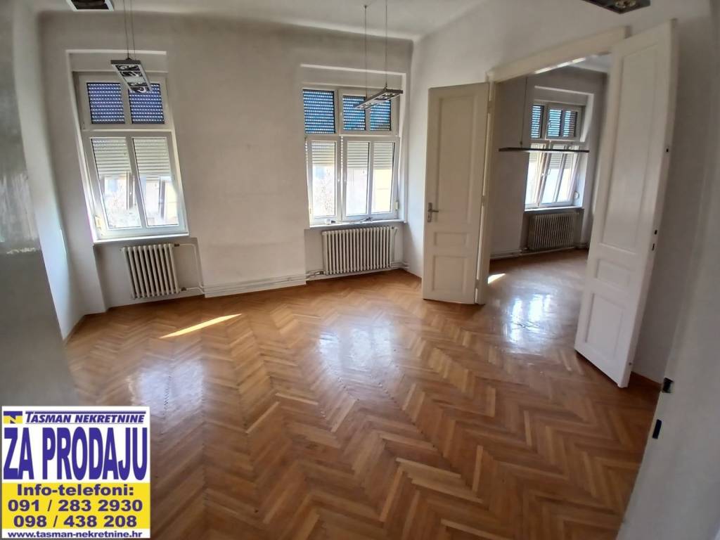 CENTAR GRADA!! MIRNIJA ULICA!! 1.KAT + PODRUM!! CENTRALNO GRIJANJE NA TOPLANU!! ATRAKTIVNA STAMBENA I POSLOVNA LOKACIJA!! PVC STOLARIJA!! STAMBENI PROSTOR + BALKON + PODRUM !! UKUPNA POVRŠINA 118,91 M2!! Stan praktičnog rasporeda prostorija u stambenoj zgradi građenoj 1940.godine u centru grada Osijeka. Stan je kompletno adaptiran unazad 7 godina. Adaptacija je obuhvatila nove cijevi i instalacije, novu stolariju u cijelom stambenom prostoru, nova keramika, obrada i ličenje zidova.... Stan se nalazi na prvome katu stambene zgrade. Ukupna površina stana je 118.91m2, a sastoji se od 3 sobe i kuhinje s blagovaonicom te balkona koji gleda na dvorišnu stranu. Pošto je prostor do sada korišten u poslovne svrhe, kupatilo se nalazi u podrumskom dijelu, ali uz određene adaptacije moguće je kupatilo napraviti i na katu. U stanu je centralno gradsko grijanje (po sobama). Prostor je klimatiziran. U kompletnom stanu je postavljena PVC stolarija. Zgrada u kojoj se stan nalazi redovito se održava (krov je obnovljen prije 5 godina, stavljena je nova fasada). Ispred zgrade nalazi se više gradskih parking mjesta na koja se može parkirati sa stanarskom parking kartom. - UŽI CENTAR GRADA! - NEPOSREDNA BLIZINA TRGA A.STARČEVIĆA ! - ATRAKTIVNA STAMBENA I POSLOVNA LOKACIJA! - NEPOSREDNA BLIZINA POSLOVNIH BANAKA! - NEPOSREDNA BLIZINA ZGRADE ŽUPANIJE I DR. DRŽAVNIH INSTITUCIJA! - NEPOSREDNA BLIZINA OSNOVNE ŠKOLE, VRTIĆA! - NEPOSREDNA BLIZINA OSJEČKOG HNK! - NEPOSREDNA BLIZINA DJEČJEG IGRALIŠTA! - NEPOSREDNA BLIZINA GRADSKOG PRIJEVOZA! - BLIZINA TRGOVAČKOG CENTRA! - BLIZINA POŠTE! - BLIZINA LJEKARNE! - BLIZINA PEKARE! - DOKUMENTACIJA O VLASNIŠTVU JE UREDNA! - DETALJNIJI SLIKOVNI I TEKSTUALNI OPIS MOŽETE DOBITI DOLASKOM U NAŠ URED, TRG SLOBODE 8, OSIJEK PRODAJA I INFORMACIJE: 031/200-742 098/438-208 091/283-2930 ksabic@tasman-nekretnine.hr