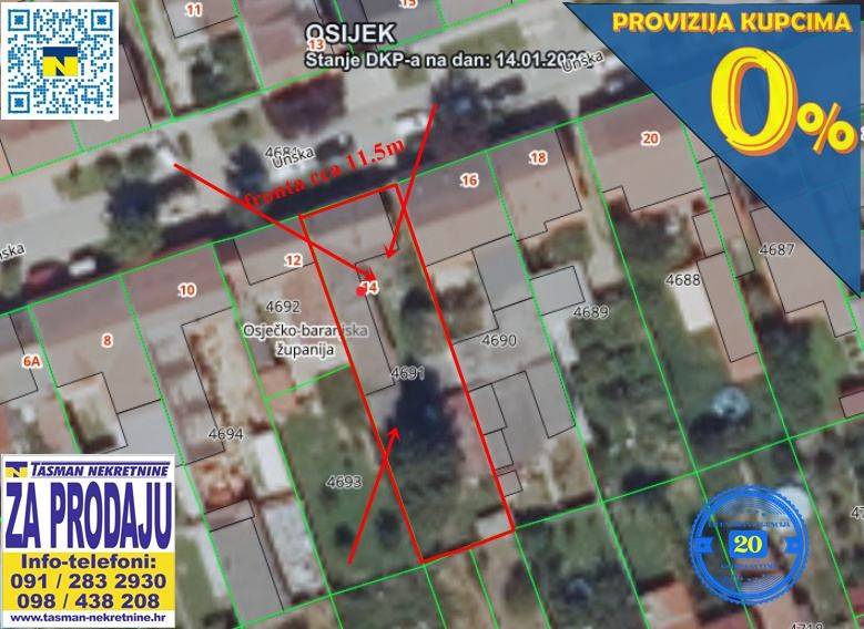 BOSUTSKO NASELJE!! UNSKA ULICA BR. 14!! TRI DVORIŠNA STANA OD 19,41 M2 DO 39,25 M2!! VANJSKE OSTAVE (ŠUPE)!! PARCELA UKUPNE POVRŠINE 468M2!! UDIO 1/3!! KOMPLETNA INFRASTRUKTURA!! Prodajemo stambenu kuću podijeljenu na dvorišne stanove s ostavama. Ukupna kvadratura parcele je 468 m2 dok se prodaje samo 1/3. Kuća se nalazi u Unskoj ulici br. 14 (Bosutsko naselje). Trenutno na prodaji su sljedeći dvorišni stanovi (prodaju se isključivo zajedno): STAN BR. 1 (ulično orijentiran) - sastoji se iz predsoblja 1,64 m2, sobe 20,30 m2, kuhinje 10,99 m2 te kupaonice 6,32 m2 - ukupne površine 39,25 m2 + tavanski prostor 41,95 m2 STAN BR. 2 ( dvorišno orijentiran) - sastoji se iz predsoblja 4,60 m2, sobe 15,91 m2, kupaonice 4,01 m2 i kuhinje 8,61 m2 - ukupne površine 33,13 m2 te tavanskog prostora od 35,10 m2 (+ manja šupa) STAN BR. 3 (dvorišno orijentiran) - prodavatelj je vlasnik 1/2 stana - sastoji se iz predsoblja 2 m2, sobe 13,63 m2, kuhinje 3,78 - ukupne površine 19,41 m2 + tavan 25,51 m2 te manje šupe Grijanje je na plinske peći ali treba uzeti u obzir da godinama nisu korištene. Na parceli je dostupna kompletna infrastruktura. - ATRAKTIVNA LOKACIJA! -NEPOSREDNA BLIZINA TRGOVAČKOG CENTRA! -NEPOSREDNA BLIZINA ŠKOLE I DJEČJEG VRTIĆA!! -NEPOSREDNA BLIZINA GRADSKOG PRIJEVOZA! -BLIZINA POŠTE! -BLIZINA LJEKARNE! -BLIZINA PEKARE! -DOKUMENTACIJA O VLASNIŠTVU JE UREDNA! -DETALJNIJI SLIKOVNI I TEKSTUALNI OPIS MOŽETE DOBITI DOLASKOM U NAŠ URED, TRG SLOBODE 8, OSIJEK PRODAJA I INFORMACIJE: 031/200-742 098/438-208 091/283-2930 tasmannekretnine@gmail.com VIŠE STANOVA NA www.tasman-nekretnine.hr