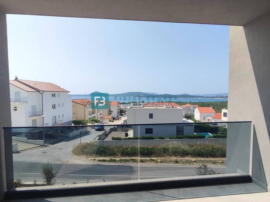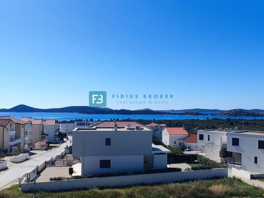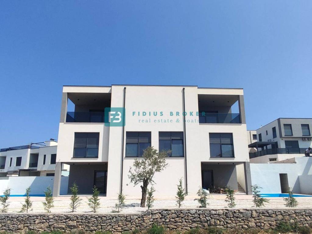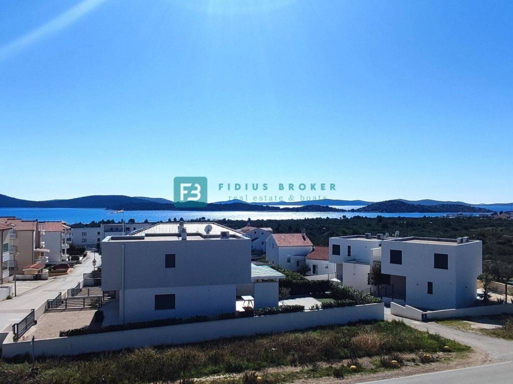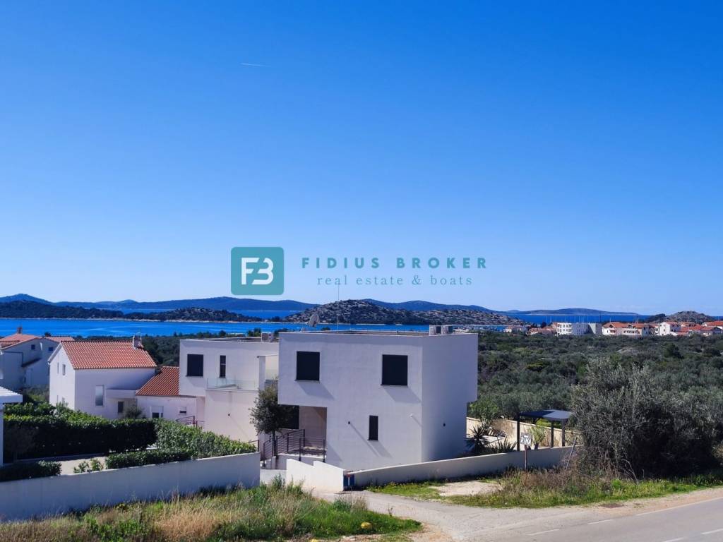 VODICE, neues, bezugsfertiges Doppelhaus, Panoramablick aufs Meer, Swimmingpool, Garten