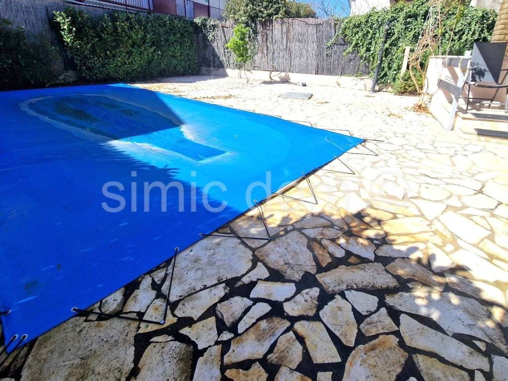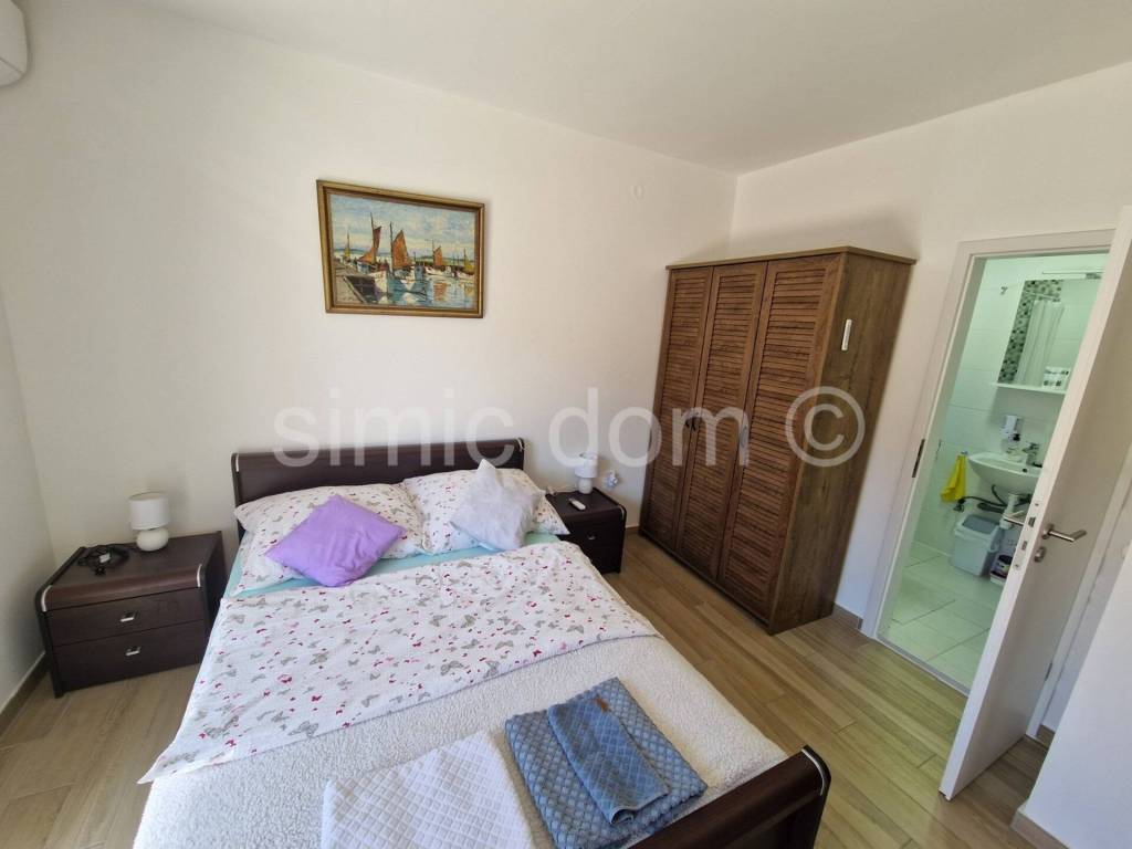 Ein komplett renoviertes und gepflegtes freistehendes Haus in Pirovac steht zum Verkauf. Das Haus befindet sich in attraktiver Lage, nur 150 m vom Kieselstrand Lolić entfernt, in der Nähe von Geschäften und nur 10 Gehminuten vom Ortskern. Die Wohnfläche beträgt 178,39 m und verteilt sich auf ein kleines Untergeschoss, Erdgeschoss, Obergeschoss und Dachterrasse. Das Untergeschoss wird derzeit als Abstellraum genutzt und hat eine Fläche von 9,69 m. Im Erdgeschoss befinden sich ein Flur, ein Schlafzimmer mit Bad, eine Küche und ein geräumiges Wohnzimmer mit Essbereich. Vom Wohnbereich und der Küche gelangt man auf eine überdachte Terrasse und in den Garten mit beheiztem Pool. Eine Innentreppe führt ins Obergeschoss mit drei weiteren Schlafzimmern, jeweils mit eigenem Bad, WC und Terrasse. Von dort führt die Innentreppe auch auf eine Dachterrasse mit Kamin und Whirlpool. Im großzügigen, 231 m großen Garten befinden sich ein Swimmingpool mit gepflasterter Sonnenterrasse, ein Abstellraum und zwei PKW-Stellplätze. Das Haus ist ideal für Familien, die ihren Urlaub in einem Haus mit Pool verbringen und gleichzeitig die Nähe zum Strand und allen Annehmlichkeiten genießen möchten. Die Eigentumsverhältnisse sind geklärt.