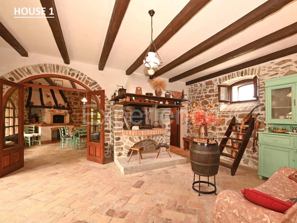 1. ISTRIANISCHES HAUPTHAUS (Objekt 1) Das Herzstück des Anwesens ein liebevoll restauriertes Familienerbe. Es wurden authentische Materialien verwendet, um den traditionellen istrischen Geist zu bewahren. Das Haus ist komplett rustikal möbliert (im Preis inbegriffen).