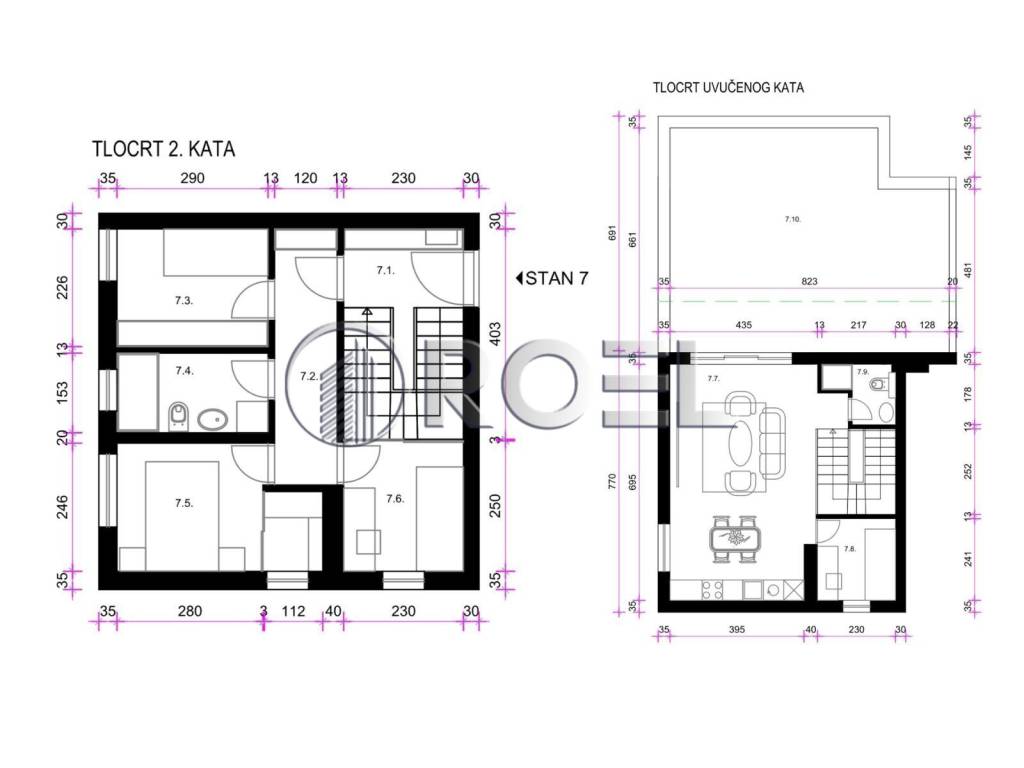 A two-level apartment of 106 m is for sale in a new development, located on the second of three floors in a smaller building, in Sesvete.