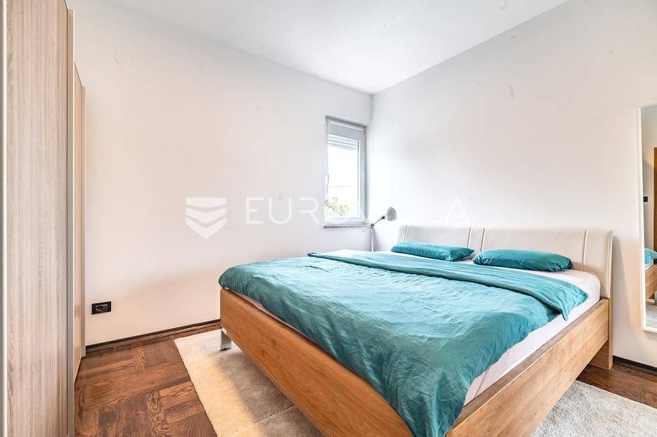 Zagreb, Bukovac, prekrasan trosoban stan u prizemlju zgrade novije gradnje 88 m2 s vrtom (141 m2) i dva dva vanjska parkirna mjesta.Sastoji se od prostranog dnevnog boravka s blagovaonicom i kuhinjom te izlazom na terasu, dvije spavaće sobe, kupaonice, gostinjskog toaleta, malog spremišta i velikog vrta. Pripadaju mu dva vanjska parkirna mjesta.Stan je izuzetno prozračan s tri orijentacije (istok, zapad, jug) što uz vrt i terasu pružaju maksimalnu udobnost i komfor. 2025.godine renovirane su kupaonice, a kuhinja je opremljena vrhunskim aparatima sa skrivenom ostavom.Nalazi se na odličnoj lokaciji u blizini vrtića, škole, trgovina. Autobusna stanica je odmah pokraj zgrade što omogućuje odličnu povezanost s centrom grada i Maksimira.Za dodatna pitanja stojimo na raspolaganju.... Više na eurovilla.hr, ID: 845837