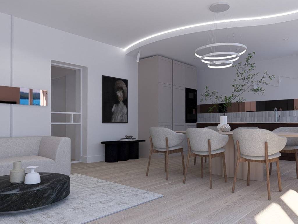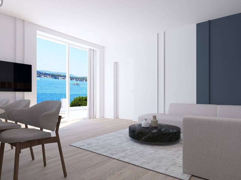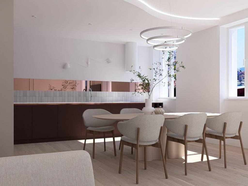Das Apartment besteht aus einem Eingangsbereich, drei Schlafzimmern, einem Gäste-WC, einem Badezimmer und einem großzügigen, offenen Wohnbereich, der Küche, Esszimmer und Wohnzimmer vereint. Vom Wohnbereich gelangt man auf eine Terrasse mit überdachter und offener Fläche ideal zum Entspannen, geselligen Beisammensein und Genießen des Meerblicks und des historischen Stadtkerns.