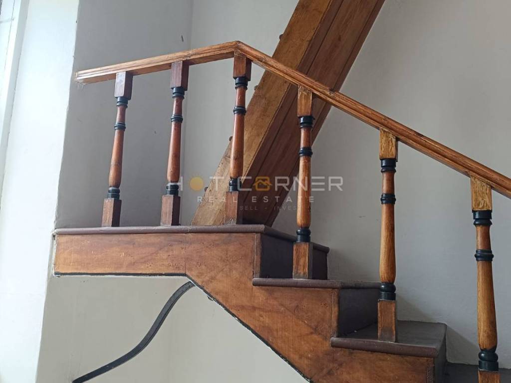 Im ersten Stock befindet sich eine geräumige Dreizimmerwohnung, in der originale Details erhalten geblieben sind, die dieser Villa eine Seele verleihen - Eichenparkettböden, Wandfresken, ein großer Holzblock mit Innentüren und authentische Holztreppen, die zum Turmzimmer führen. Dieser Raum, mit Zugang zur ebenen Terrasse, hat einen besonderen Charme und ein Gefühl von Intimität.