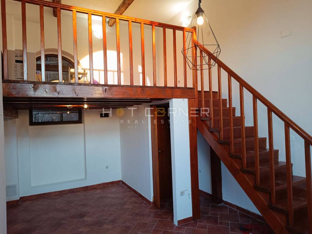 Das Erdgeschoss bietet einen Geschäftsraum von 30 m² mit Galerie und WC, der unabhängig genutzt oder mit dem oberen Teil verbunden und zu einer einzigartigen Wohn- und Geschäftseinheit umgewandelt werden kann.