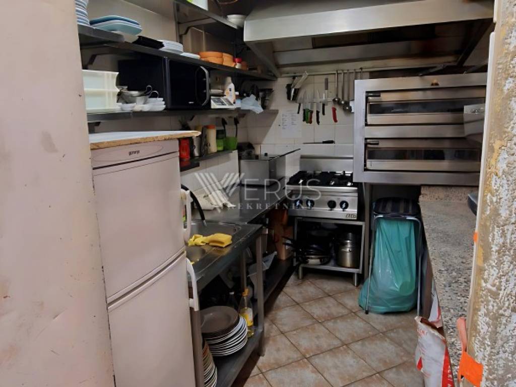 Die Immobilie erstreckt sich über Erdgeschoss, Obergeschoss und Dachgeschoss und bietet vielfältige Nutzungsmöglichkeiten. Im Erdgeschoss befindet sich derzeit eine gut eingeführte Pizzeria mit langjährigem Betrieb, was diese Immobilie zu einer hervorragenden Gelegenheit macht, ein bereits erfolgreiches Geschäft zu übernehmen.