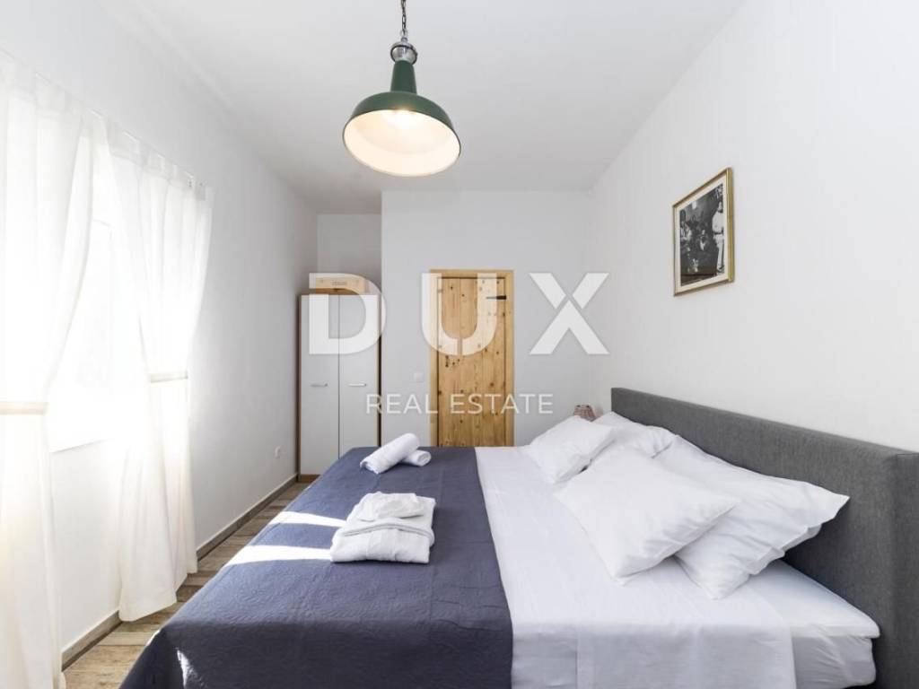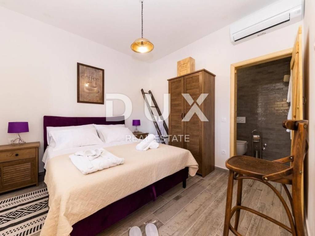 Eine wunderschöne Luxusvilla mit Pool und Meerblick steht in Ždrelac auf der Insel Pašman in der Nähe von Zadar zum Verkauf. Die im mediterranen Stil erbaute Steinvilla ist nur 30 m von der Küste entfernt. Erbaut auf einem Grundstück von 491 m2 verfügt die Villa über insgesamt 300 m2 Wohnfläche. Das Innere und Äußere der Villa ist nach der traditionellen Steinkonstruktion dekoriert, die das authentische Element dieses Klimas widerspiegelt. Im Erdgeschoss der Villa befinden sich ein wunderschön eingerichtetes Wohnzimmer, eine moderne Küche und ein Esszimmer sowie drei Schlafzimmer mit angeschlossenen Badezimmern. Die Küche ist für Cateringzwecke geeignet bzw. ausgestattet, sodass das Erdgeschoss problemlos in ein Restaurant umgebaut werden kann. Im ersten Stock der Villa befinden sich zwei Schlafzimmer und Badezimmer, ein weiteres Wohnzimmer und ein Fitnessraum mit Trainingsgeräten.