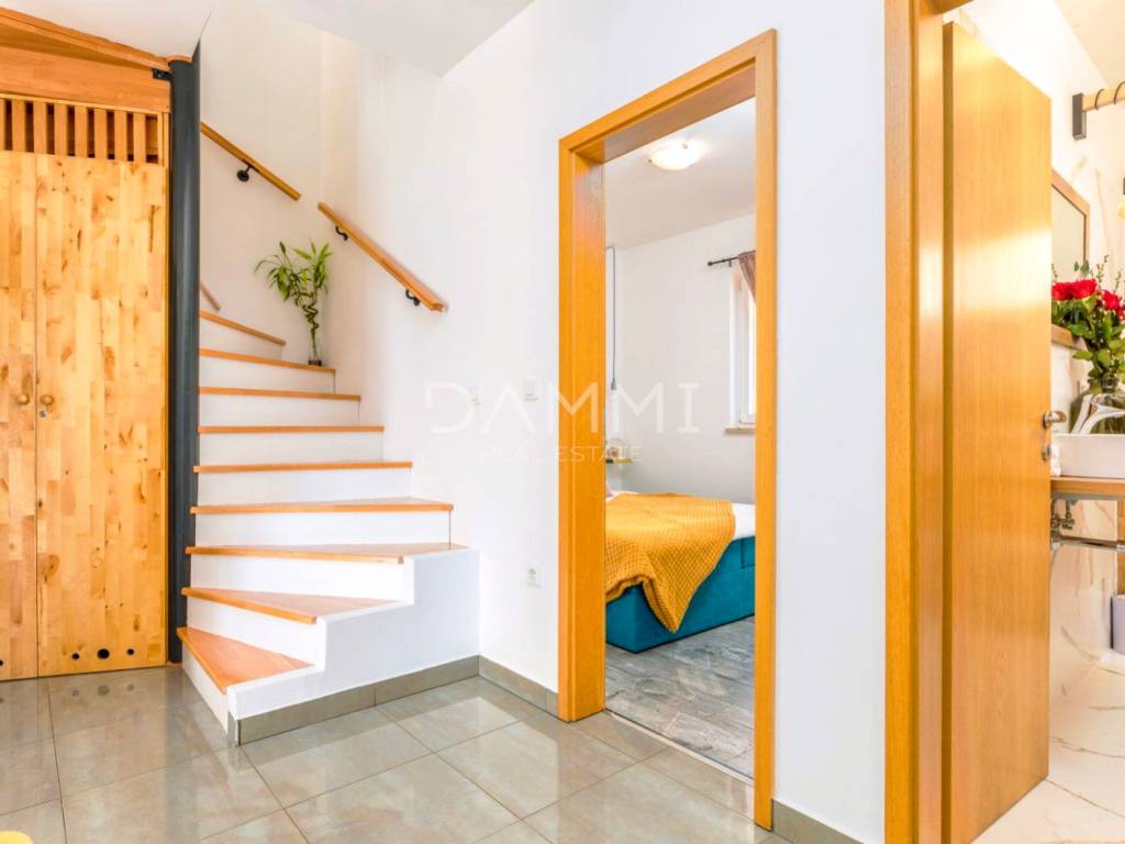 Zum Verkauf steht eine zweistöckige Wohnung in ausgezeichneter Lage in Valbandon, nur 500 m vom Meer, den wunderschönen Stränden und den Promenaden der Brijuni-Riviera entfernt.