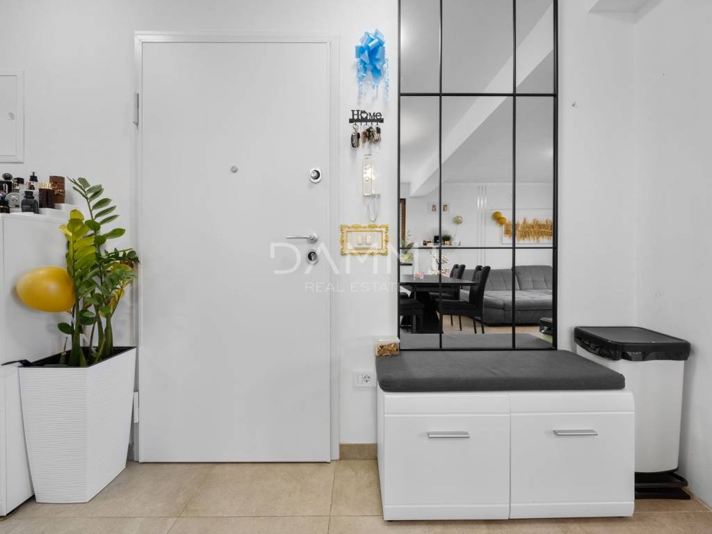Stan se prostire na 67 m2 vrhunski iskorištenog prostora koji odiše suvremenim dizajnom. Unutrašnjost je opremljena visokokvalitetnim namještajem izrađenim po mjeri, što osigurava maksimalnu funkcionalnost i estetiku u svakoj prostoriji. Cijeli je prostor opremljen modernim aparatima s funkcijom pametnog povezivanja, što omogućuje jednostavno upravljanje domom putem mobilnih uređaja.