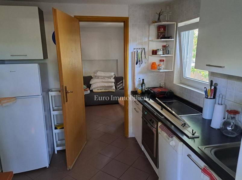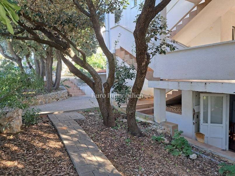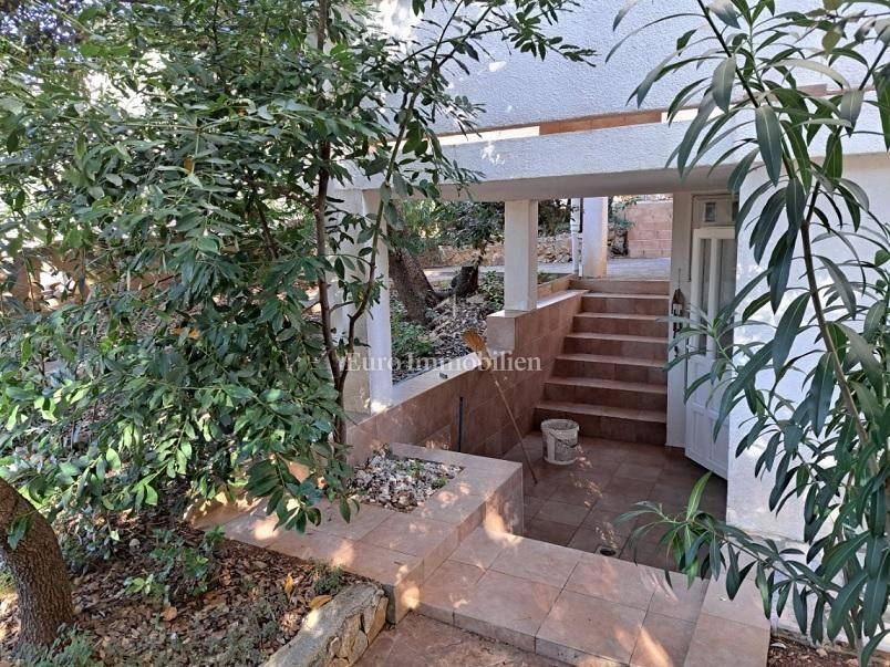 Ein von Grün umgebenes Haus steht in attraktiver Lage in Mandre zum Verkauf, nur wenige Gehminuten vom Strand entfernt.