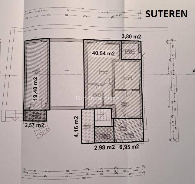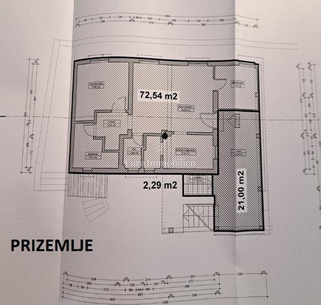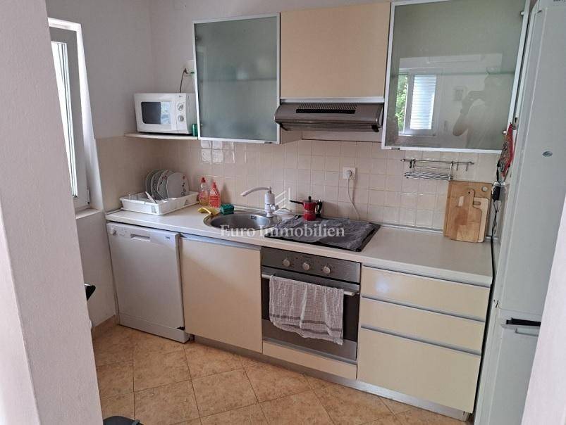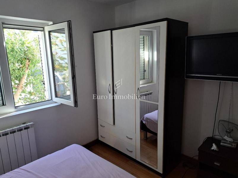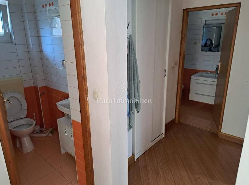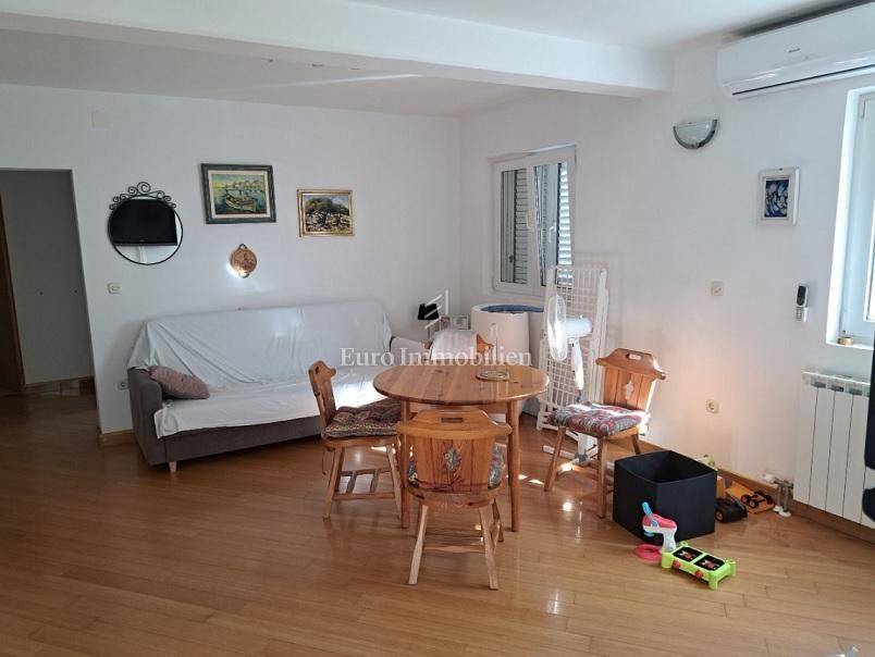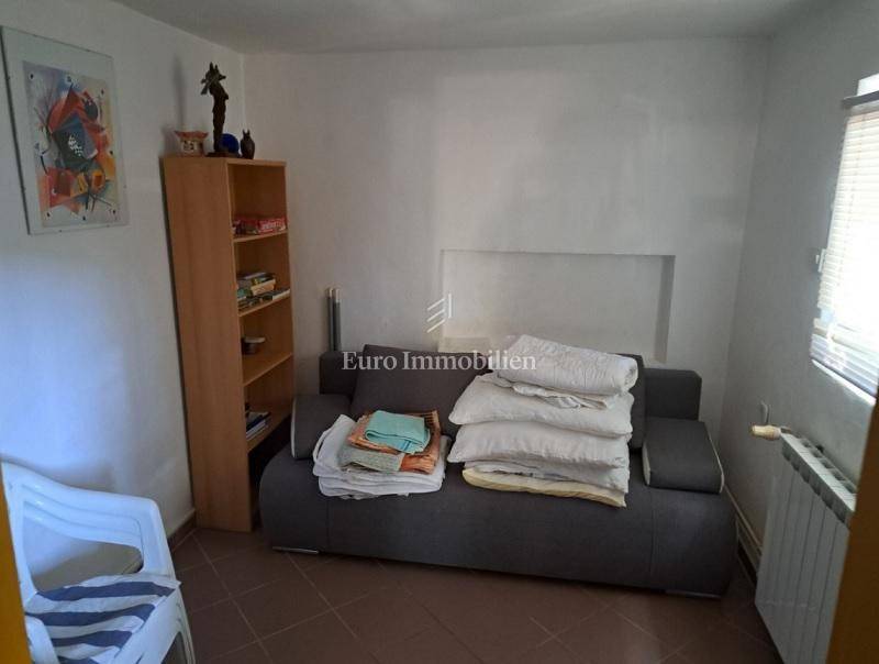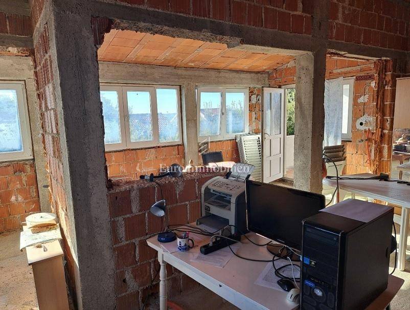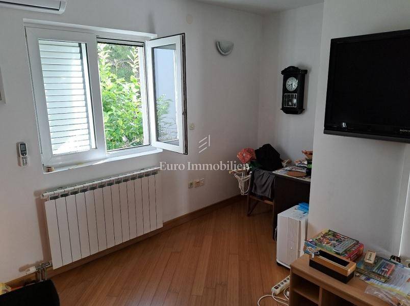 Das Haus hat drei Etagen, die Gesamtfläche beträgt 106 m2. Im Keller befindet sich eine Zweischlafzimmerwohnung von 40,54 m2 und ein Keller-/Abstellraum von 19,48 m2. Im Hochparterre gibt es eine Wohnung von 72,54 m2. Im ersten Stock befindet sich ebenfalls eine große Wohnung von 84,07 m2 im Rohbauzustand. Alle Wohnungen haben große Terrassen. Rund um das Haus gibt es einen angelegten Garten von 298 m2, mit einem Steingrill und viel mediterranem Grün. Es liegt in einer ruhigen Straße, nur wenige Gehminuten zum Strand sowie zum Stadtzentrum. Das Haus hat alle Genehmigungen.
