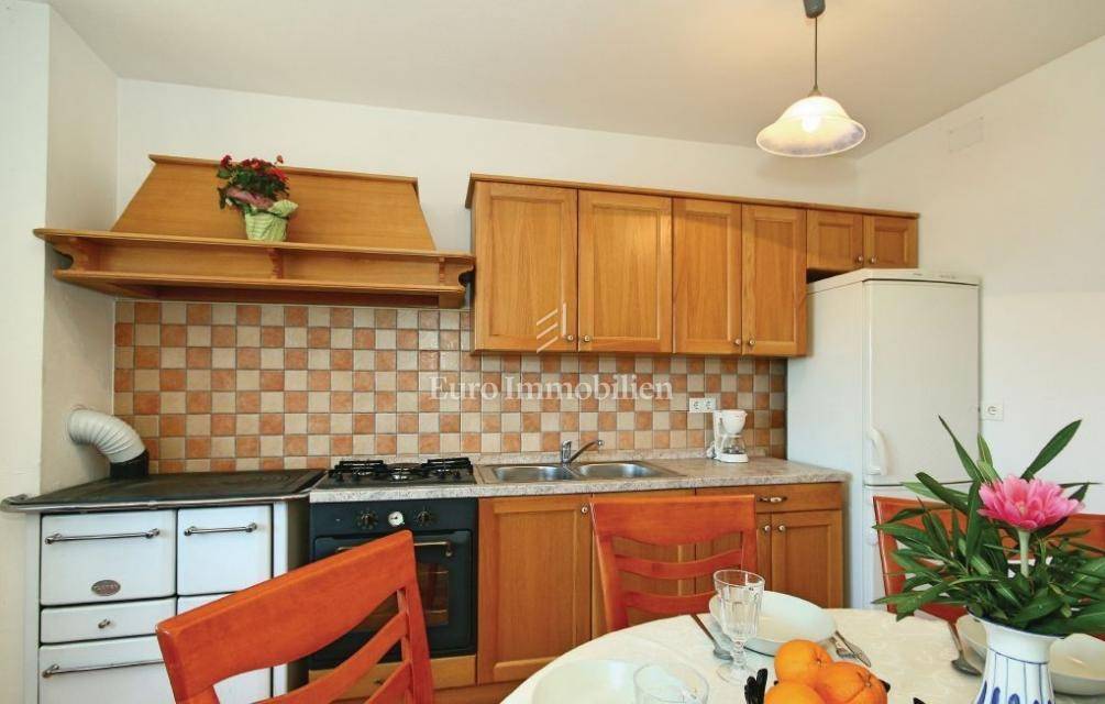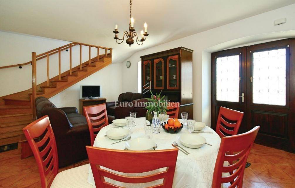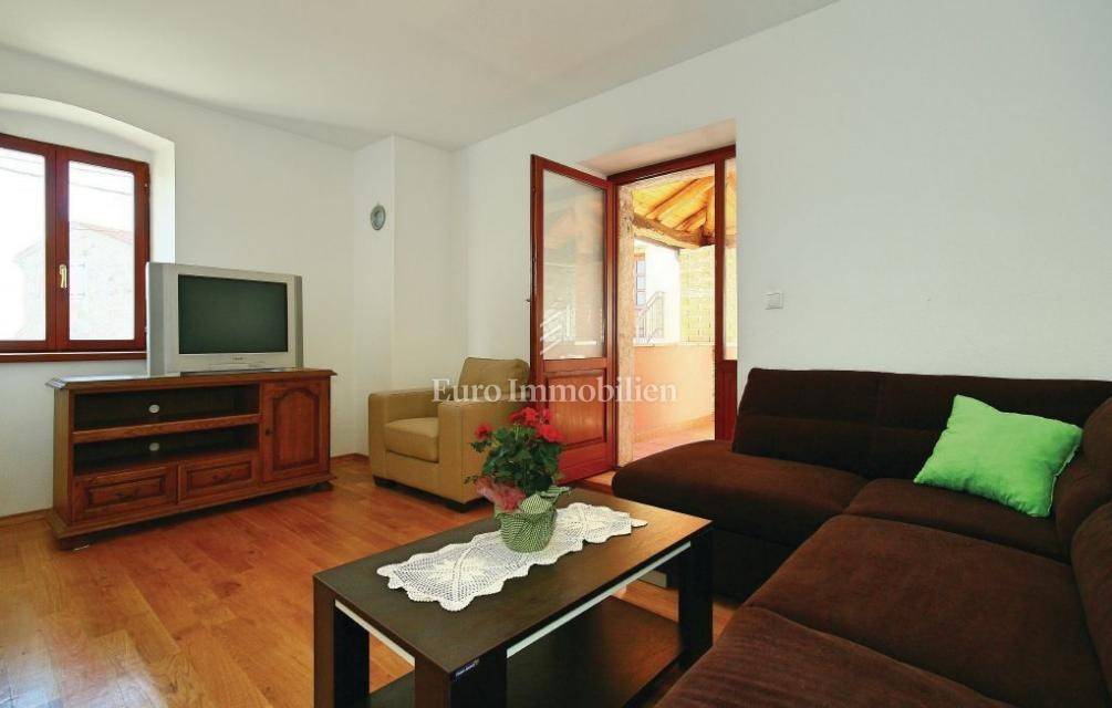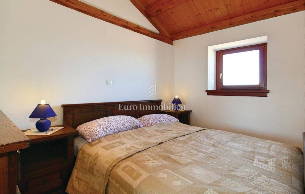 Das komplett renovierte Doppelhaus aus Stein befindet sich in einem kleinen istrischen Dorf, 7 km von Višnjan entfernt. Es besteht aus Erdgeschoss, erstem und zweitem Stock. Es verfügt über insgesamt zwei Schlafzimmer, ein Badezimmer, ein Wohnzimmer, eine Küche und ein Esszimmer sowie einen schönen 12 m² großen Südbalkon. Ein 10 m² großer Abstellraum und ein Parkplatz sind ebenfalls vorhanden. Das Haus wurde 1820 erbaut und 2011 vom Fundament bis zum Dach renoviert. Es wird komplett möbliert mit Möbeln und Geräten verkauft. Heizung: Festbrennstoff.